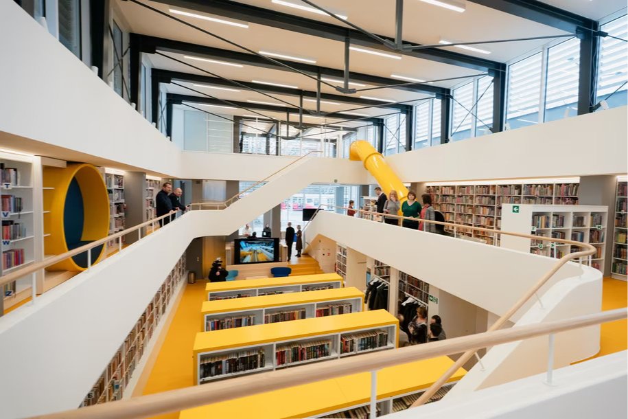 Programy a workshopy se budou odehrávat v připravených dílničkách, zatímco změnou uspořádání posuvných regálů vznikne prostor pro besedy a přednášky. V letních měsících tyto aktivity rozšíří také zahrada. A na své si přijdou i ti nejmenší, kteří se mohou sklouznout na výrazné žluté skluzavce.