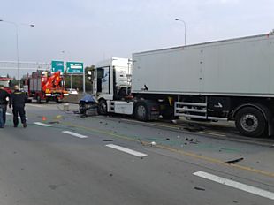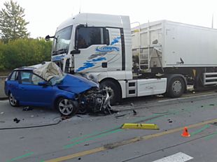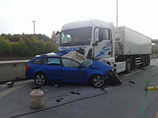 Na obchvatu zemřel řidič octavie. Smetl ho kamion