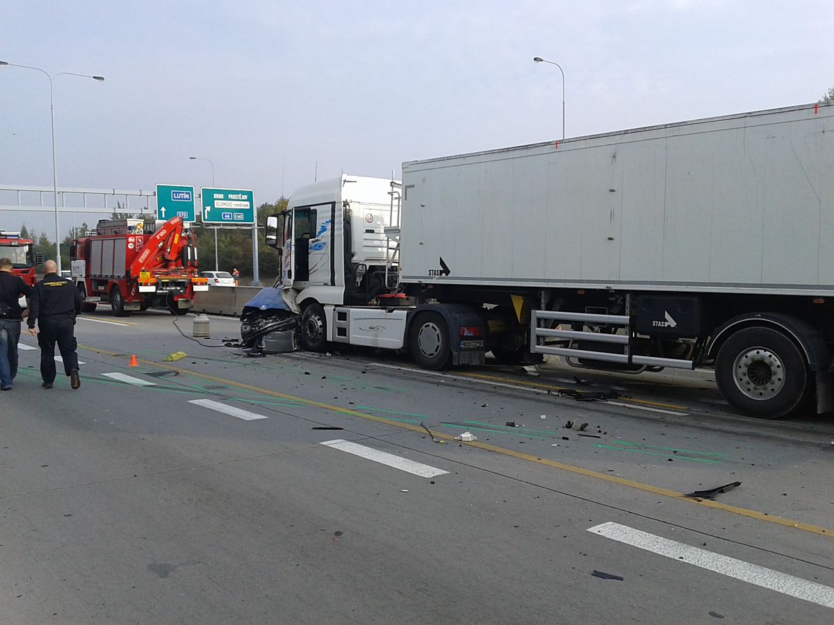 K nehodě došlo kolem osmé hodiny ráno na úrovni čerpací stanice OMW. “Řidič osobního vozu předjížděl nákladní automobil a při míjení o něj zavadil, náraz jej roztočil a poslal do protisměru, kde skončil pod protijedoucím kamionem,” popsal mluvčí záchranné služby Pavel Vysloužil. Padesátiletý řidič octavie byl na místě mrtev. “Provoz je zatím stále řízen policisty. Řidiče odkazujeme na nejbližší sjezdy. Od výjezdu z kruhového objezdu u Globusu ve směru na Ostravu se tvoří kolony. Apelujeme tímto na řidiče, aby se tomuto místu vyhnuli,” komentoval aktuální situaci mluvčí policie Petr Čunderle.