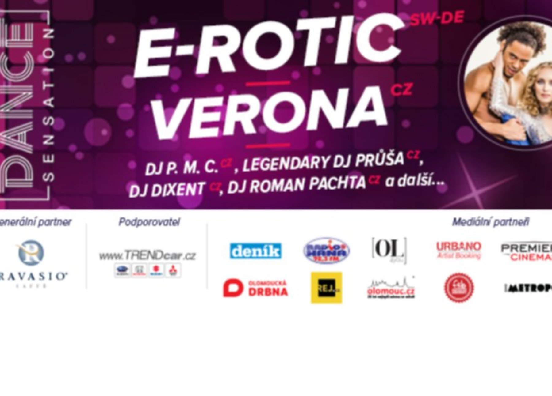 Fenomenální devadesátková party ale koncerty skupin E-ROTIC a Verona ani zdaleka nekončí. Vaše boky v rytmu 90. let rozhýbou tím nejlepším hudebním výběrem také exkluzivní Dj 's – mezi nimi například DJ P. M. C., LEGENDARY DJ PRŮŠA, DJ DIXENT či DJ ROMAN PACHTA. Nejen díky tomu slibuje Dance Sensation skvělou zábavu plnou tance po celý večer i noc. A toho prostě musíte být součástí!