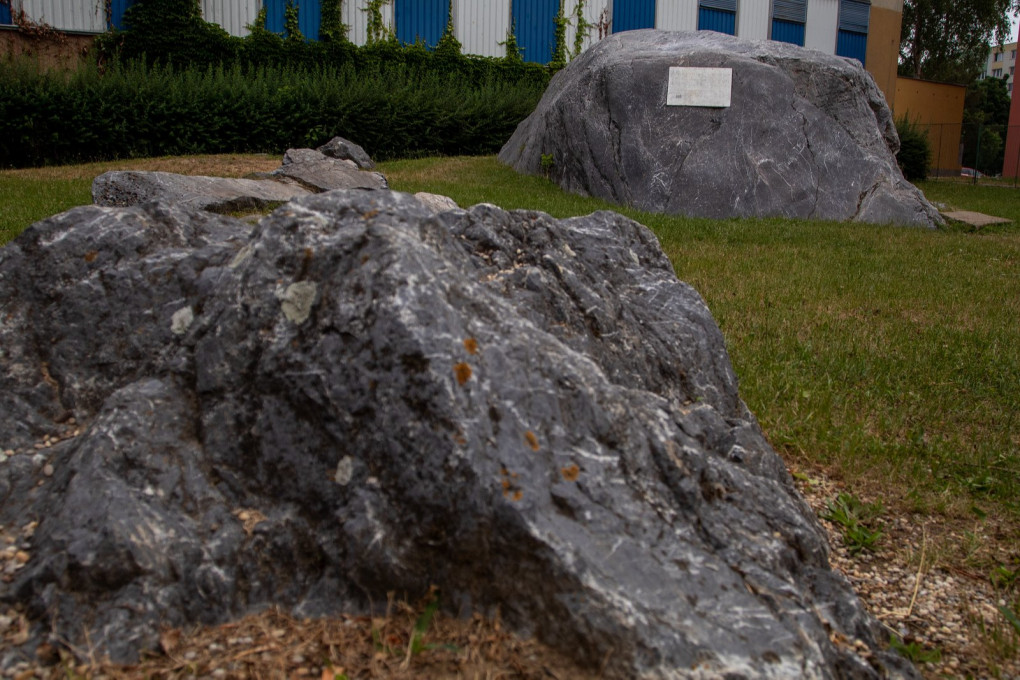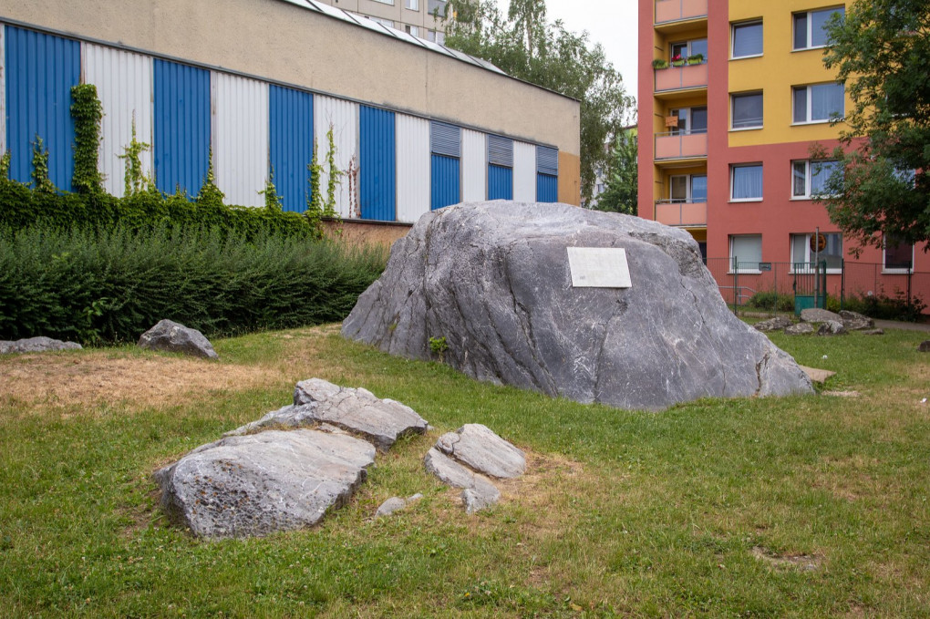 Další zastavení na stezce čeká návštěvníky hned v parku před památníkem, kde se nachází tzv. bludný balvan. "Jde o pozůstatek vápencové homole – Skalky, která kdysi zdejší krajině dominovala. Zároveň se v parku nachází informační cedule, že právě zde byl odkryt hrob lovců mamutů. Celé tohle místo včetně památníku se nachází uprostřed nynějšího sídliště a ani spousta místních neví, jaké unikátní objevy mají ve své blízkosti, nebo že se právě zde nachází památník i výchozí bod samotné stezky," říká Tomková.