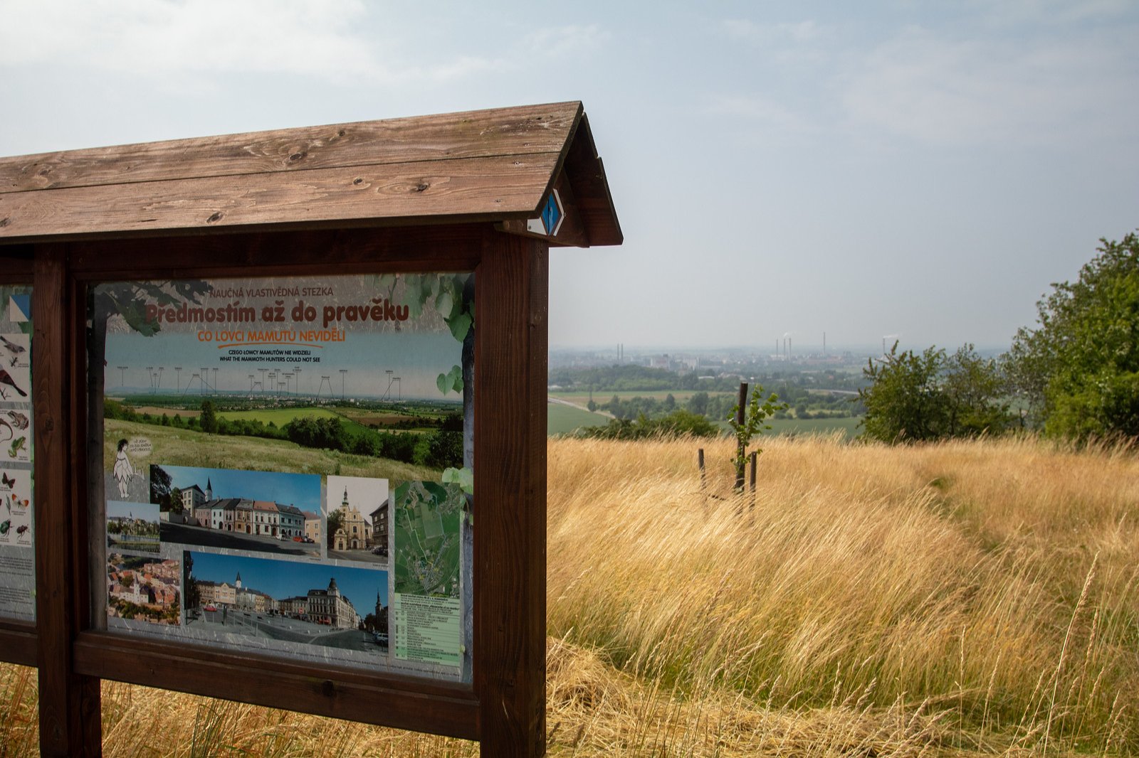 Po naučné stezce se tedy vydáváme dál a postupně opouštíme panelákové sídliště a pokračujeme přes kopec Hradisko, který proslul nálezem nástrojů neandrtálců, po školní stezce až směrem k Přerovské rokli – velmi oblíbenému místu motokrosových závodníků. Odtud už je to jen kousek k nejvyššímu bodu celé stezky – Čekyňskému kopci. Informační cedule nám zde ukazují, jaký výhled se z kopce naskytnul tehdejším lovcům mamutů i jaký pohled se nám naskytne dnes – při dobré viditelnosti lze spatřit i baziliku na Svatém Kopečku u Olomouce.