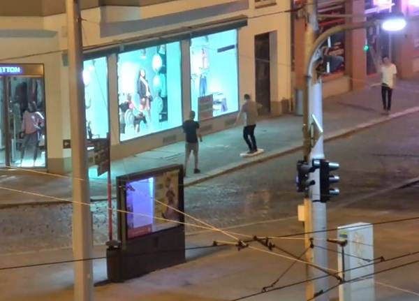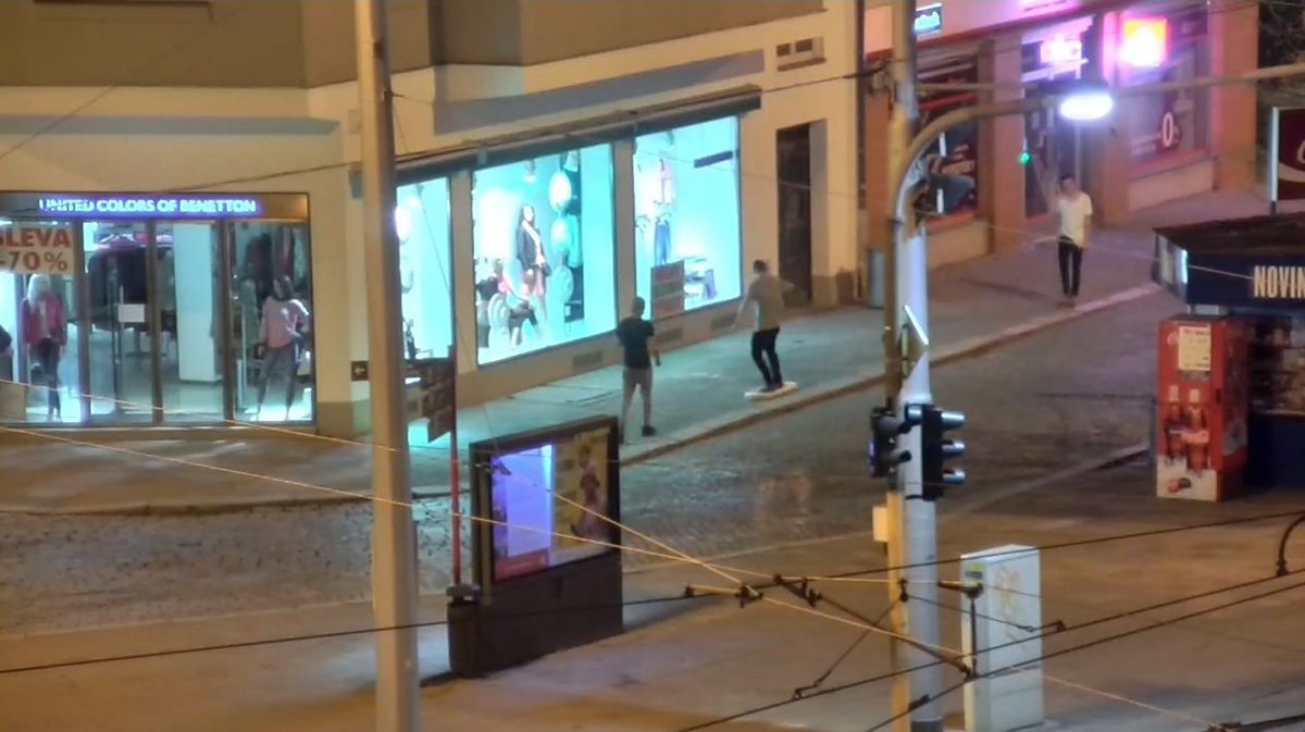 Pracovnice Městského kamerového dohlížecího systému spatřila v neděli 2. 4. 2017 kolem páté hodiny ranní v ulici Riegrova trojici mladíků, kdy jeden vzal plastovou dopravní značku Směrovací deska a odešli směrem ke tř. Svobody. Zde mladík značku položil na chodník a následně na ní trojice zkoušela surfovat. Na místo byla okamžitě vyslána hlídka, která trojici kontaktovala, a ta se k celému jednání přiznala. Mladíci ve věku 17 až 21 let byli strážníky poučeni, že celou věcí se pro podezření ze spáchání přestupku na úseku dopravy a na úseku silničního hospodářství bude zabývat správní orgán.