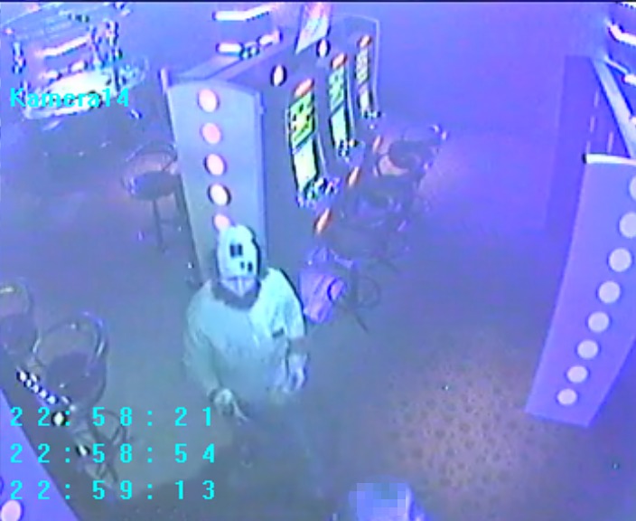 "K loupežnému přepadení došlo v úterý 28. března krátce před třiadvacátou hodinou. Do herny vstoupil neznámý muž a posadil se k jednomu z hracích automatů. Na hlavě měl pokrývku připomínající helmu. Obsluha baru za ním přišla, aby ho upozornila na to, že má z hlavy pokrývku sundat. Muž na to reagoval tím, že zpod bundy vytáhl krátkou střelnou zbraň, namířil ji na obsluhu a se slovy 'Dej sem prachy' požadoval vydání peněz. Žena se k němu otočila zády a šla ke kanceláři. Muž šel za ní. Žena stačila zavřít dveře, zamknout a schovat se. Neznámý muž přišel ke dveřím, zacloumal klikou a poté se vrátil zpátky k hracím automatům, kde u jednoho z nich seděl muž. Na něj také namířil zbraň a se slovy 'Dej sem peněženku a mobil' požadoval vydání těchto věcí. Když mu muž řekl, že nic nemá, neznámý muž z herny odešel. Ke škodě na majetku ani ke zranění osob nedošlo," uvedla policejní mluvčí Irena Urbánková.