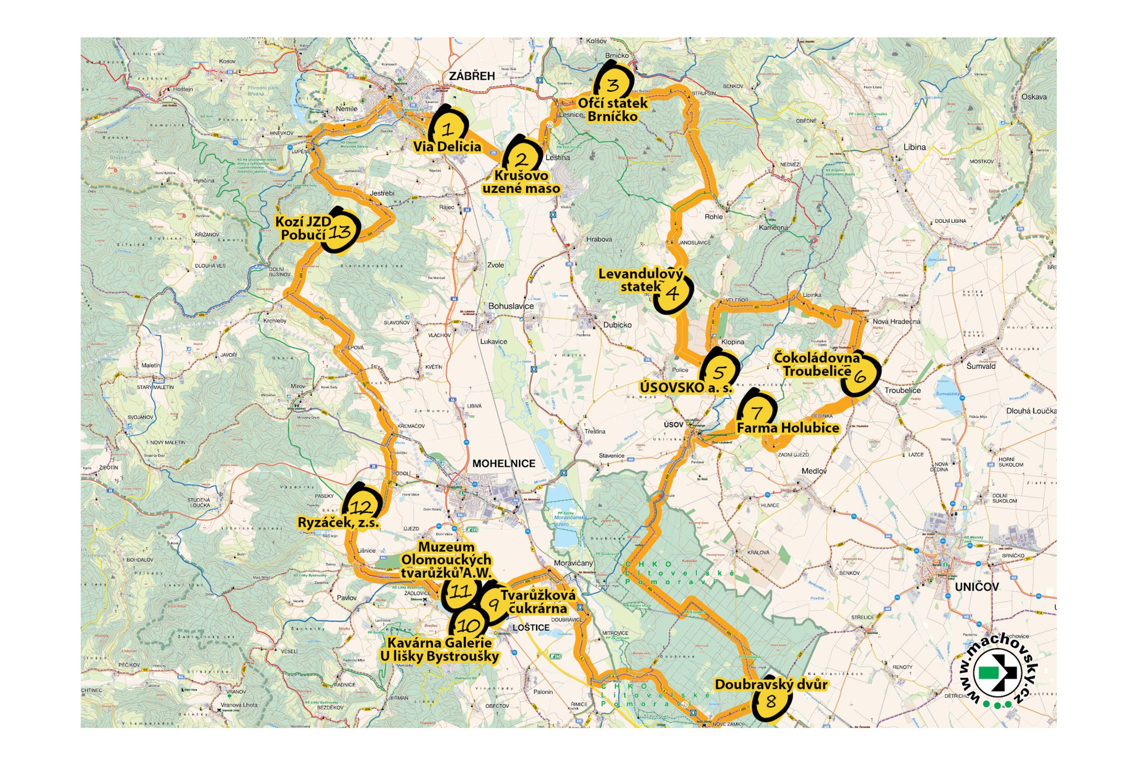 Soutěživého ducha mohou turisté podpořit sbíráním razítek do hrací karty. Odměnou jim bude pamětní magnetka. Mapu, herní kartu i magnetku mohou získat na každé zastávce, kde jsou na cyklisty připraveni. Trasa je také vybavena dvěma dobíjecími stanicemi pro elektrokola," doplnila manažerka Mikroregionu Mohelnicko Lucie Grundová. Projekt pochoutkové cyklotrasy finančně podpořil Olomoucký kraj, který na rozvoj turistického ruchu dává milióny korun ročně.