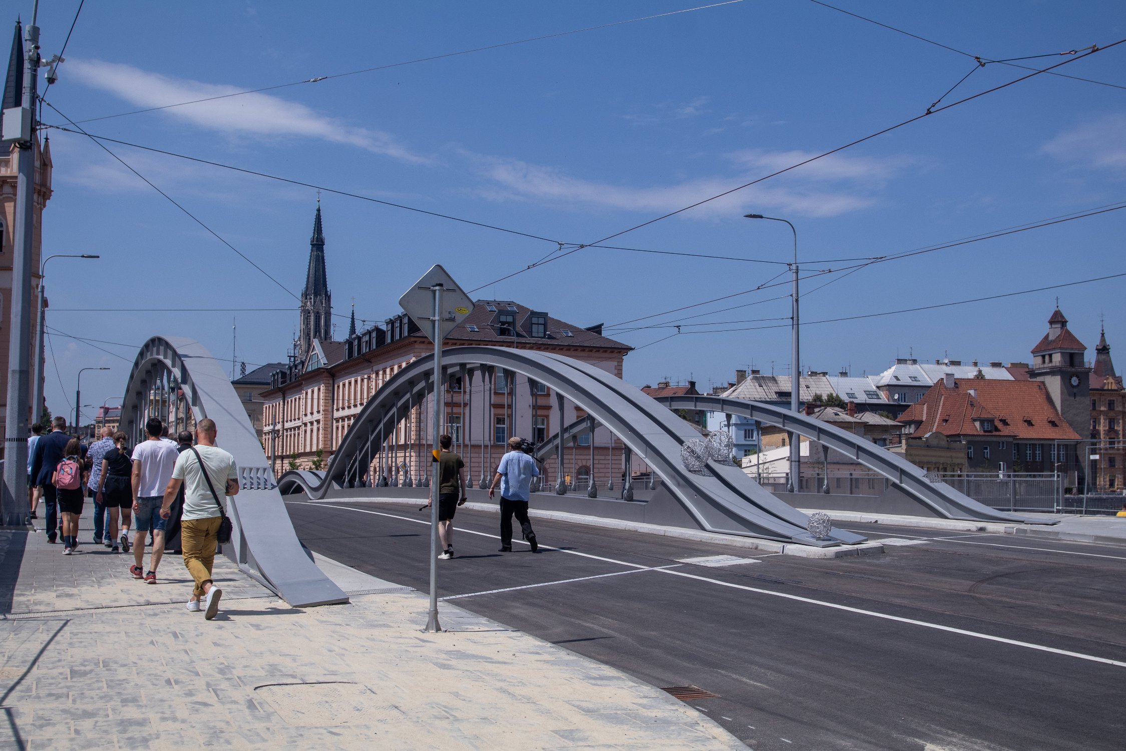 Od prvního července se automobilová i tramvajová doprava vrací na spojnici Hlavní nádraží - Žižkovo náměstí. Nový most, jehož stavba trvala přes dva roky, je hotov. Dnes jako první v Olomouci dostal i jméno.