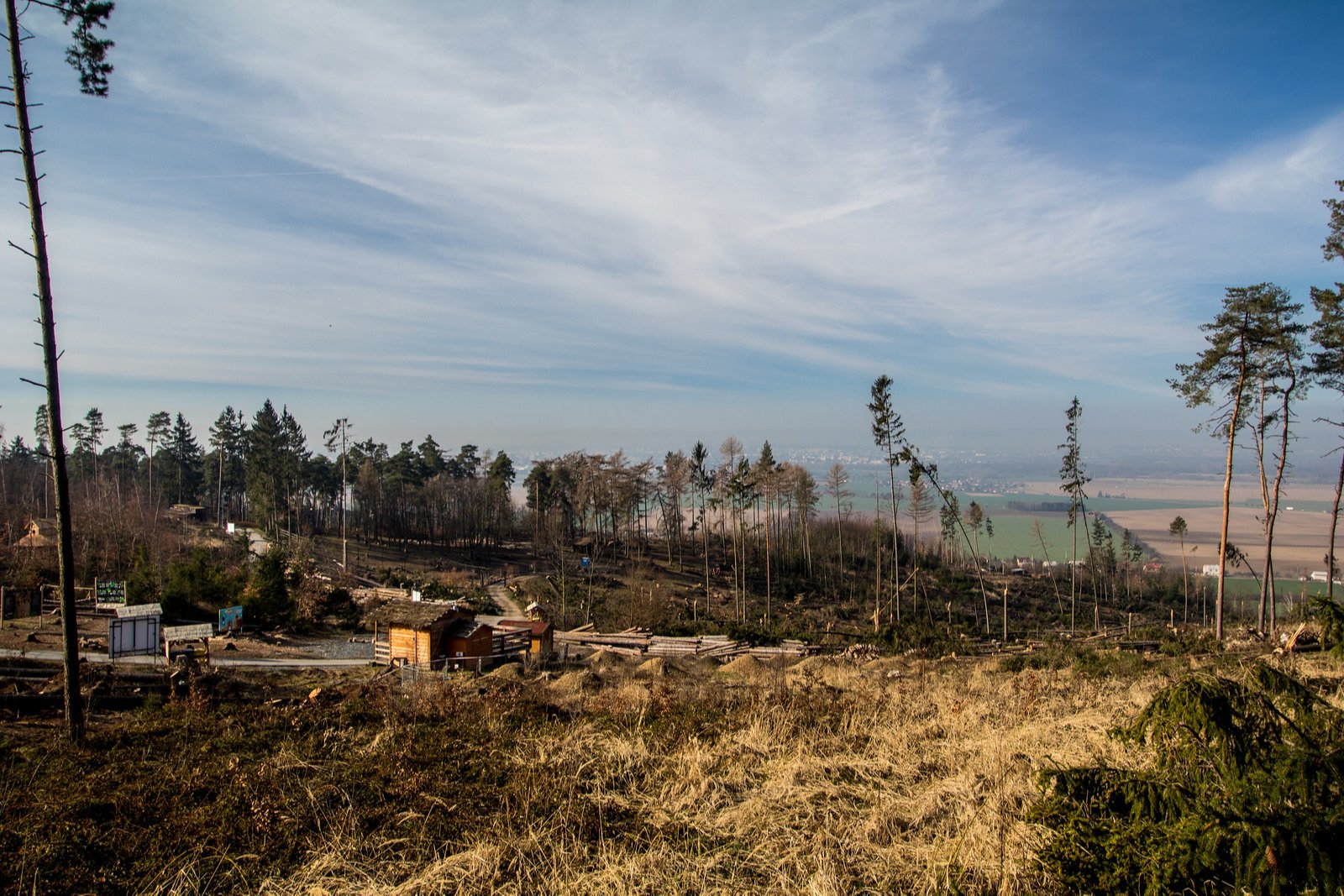 Březen. Vichřice změnila část zoologické zahrady v měsíční krajinu. S jejími následky se zoo potýká dodnes.