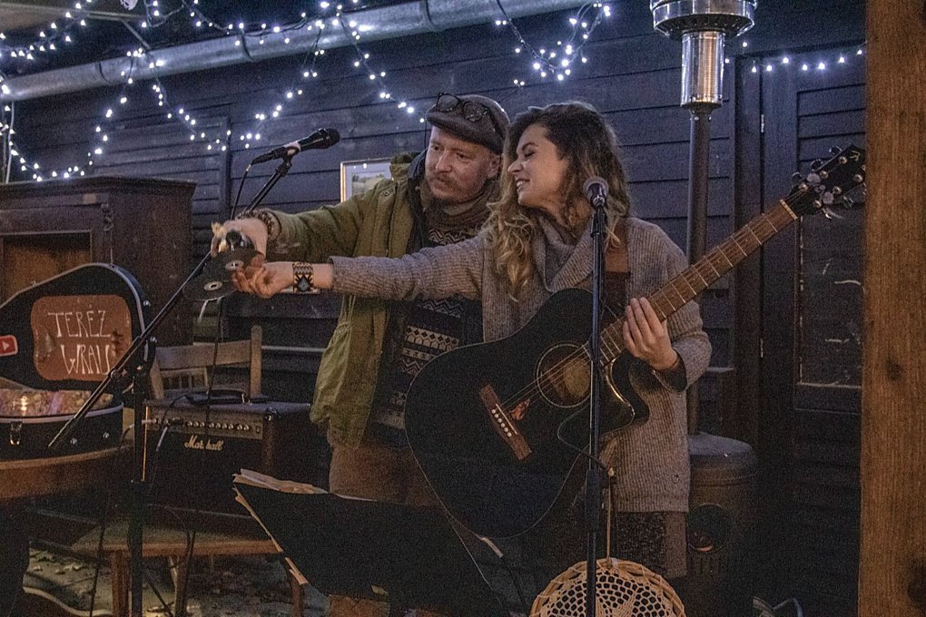 Listopad. Buskerka Terez Wrau pokřtila na letním kině své nové CD nazvané Bohyním.