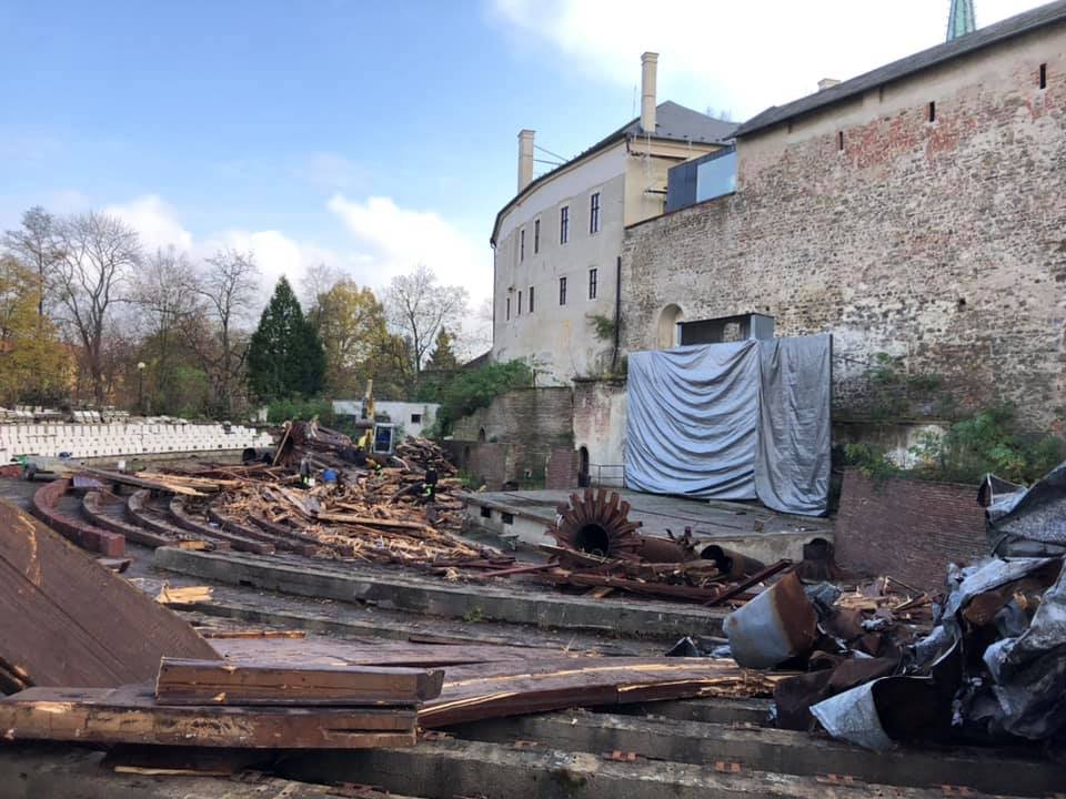 Říjen. Dřevěné "stromy", dominanta letního kina, šly k zemi. Důvodem byl podle odborníků jejich špatný technický stav.