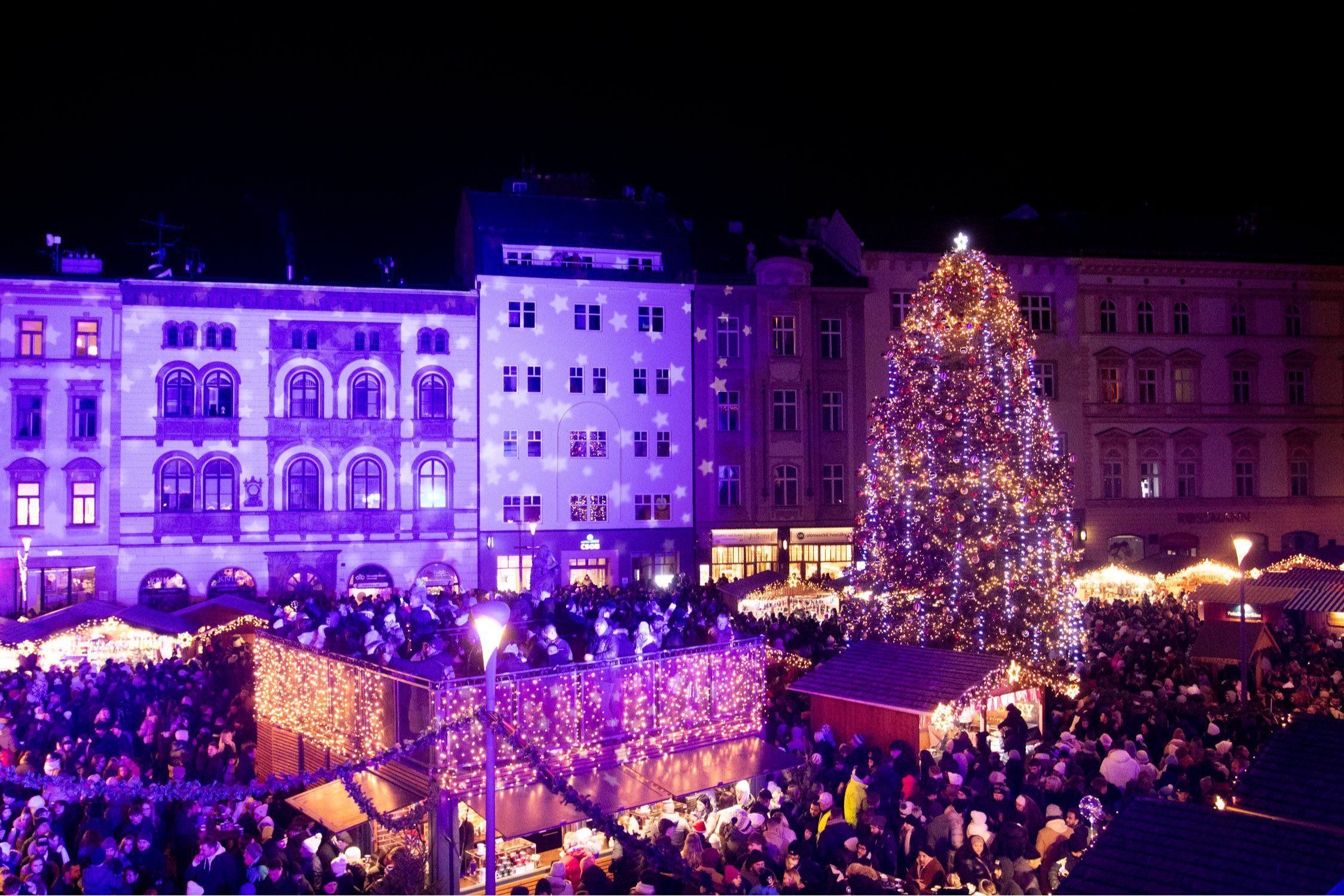 Na Horním náměstí se v neděli vpodvečer rozzářil vánoční strom. A oblíbené vánoční trhy tak mohou začít. Potrvají až do 23. prosince.