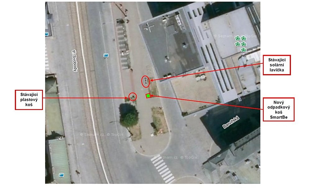 Pokud chcete vědět, jak fungují chytré nádoby SmartBe, vyzkoušet je můžete u hlavního vlakového nádraží nebo v centru na třídě Svobody. Město začalo pilotně testovat tři koše, které na zhruba šest měsíců nahradí běžné nádoby na odpad. Koše disponují vlastním lisem, solárním panelem a jejich zaplněnost lze sledovat na dálku.