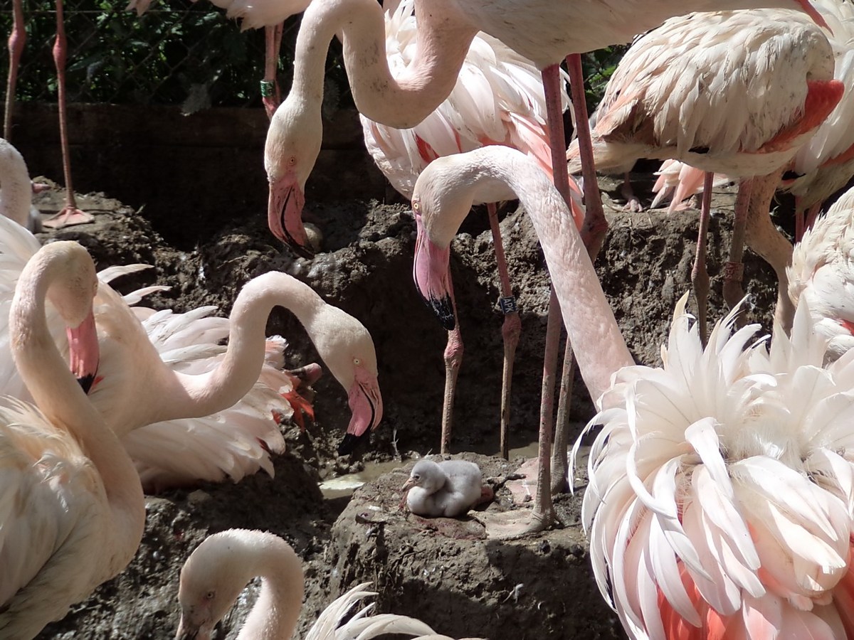 "Letos jsme po loňské pauze netrpělivě sledovali chování celé skupiny už od jara. Obávali jsme se, jestli při nedaleko probíhající stavbě pavilonu KALAHARI, budou mít dostatek klidu, který vyžadují pro zahájení páření a hnízdění. První zaznamenané páření v nás vyvolalo naděje, následovala stavba hnízd, ty si plameňáci uplácávají z mokré hlíny. Postupně na ně usedlo čtrnáct ptáků a nyní jsou ve výběhu vidět první čtyři vylíhlá mláďata. Vypadají jako šedí plyšáci s poměrně krátkými nožičkami a neohrabaně se pohybují mezi ostatními hnízdy za přísného dohledu rodičů," dodala Břečková.