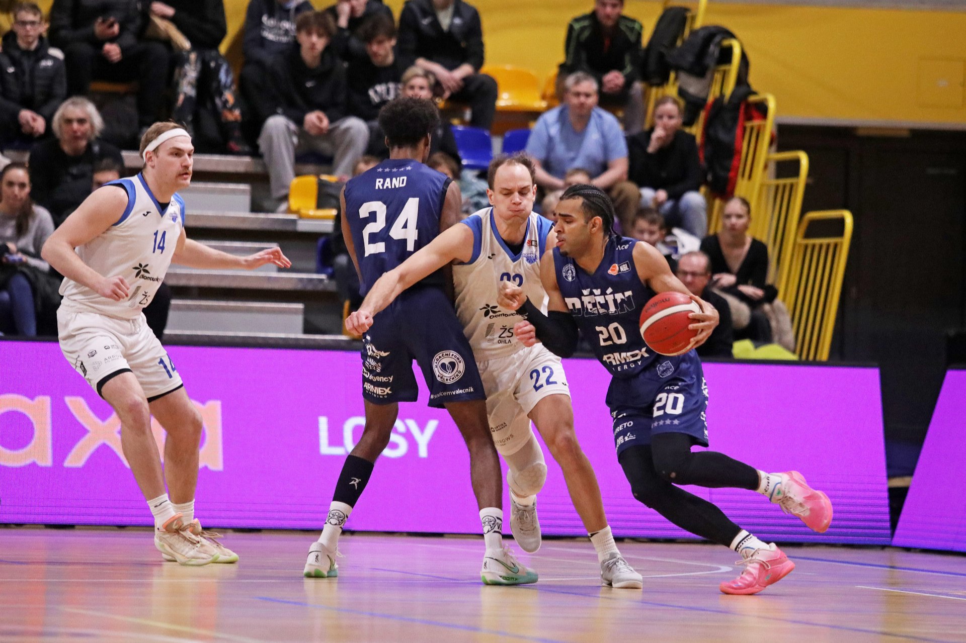 Na začátku druhé periody se Olomoucko dokonce ve třech případech dostalo do těsného vedení a nadechovalo se k obratu. Jejich nápor zastavilo zranění Jarena Holmese, který musel na konci 14. minuty odstoupit a Hradec toho využil k zisku vedení 46:41 po prvním poločase.