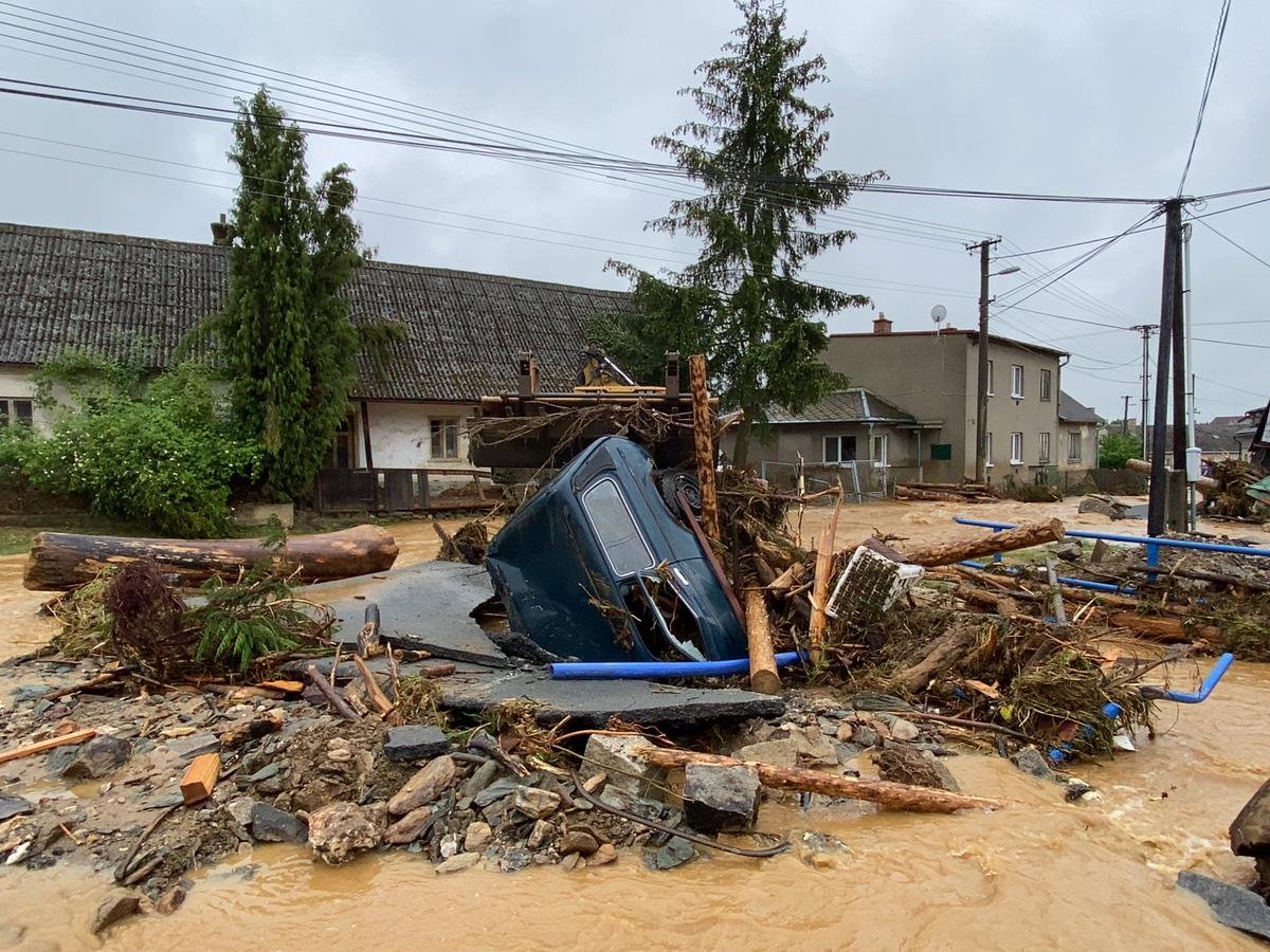 - Zasahujeme hlavně v Šumvaldu, kde je zřízen i štáb velitele zásahu. Na místě je těžká technika ze Záchranného útvaru Hlučín a ZÚ Jihlava s vyprošťovacím automobilem, hydraulickým nakládacím jeřábem, rypadlem i nakladačem. Vyprošťujeme automobily z vodních toků, čistíme břehy a koryta od nánosů naplavenin, dřeva a dalšího materiálu, aby se řeka mohla vrátit zpět. Práci nám komplikuje poškozená dopravní infrastruktura, utržené cesty i mosty. Na místo byl povolán také statik, který zhodnotí stav zatopených objektů. Začínáme také čerpat vodu ze sklepů.