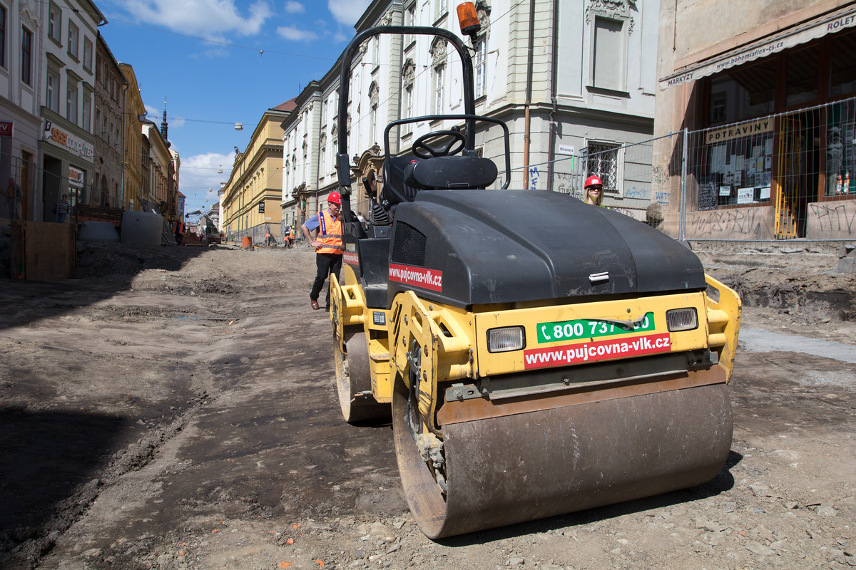 dlažbu i podkladní vrstvy komunikace. Aktuálně stavební dělníci odstraňují další vrstvy zeminy,