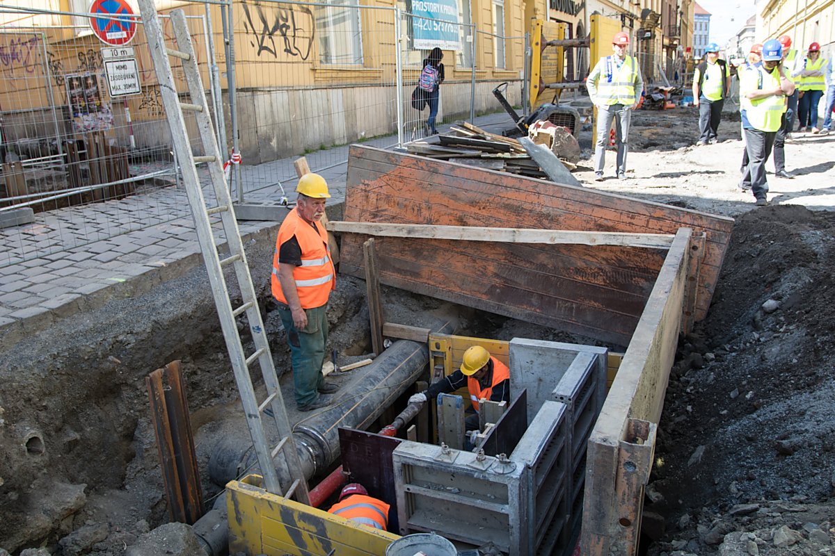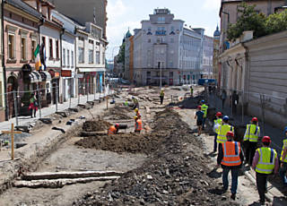 Více než šest týdnů už běží naplno stavební práce na největší a nejvýznamnější investici města v roce 2017. Ulici 1. máje obsadili stavební dělníci a těžká technika už na počátku dubna. Hotovo bude v listopadu. Po odkrytí dlažby se mohli radovat i archeologové. Před hotelem Palác totiž narazili na pozůstatky městské brány. A objevili také dvě lidské kostry. Jak se na místo, které nikdy nesloužilo jako pohřebiště, dostaly, je záhadou.