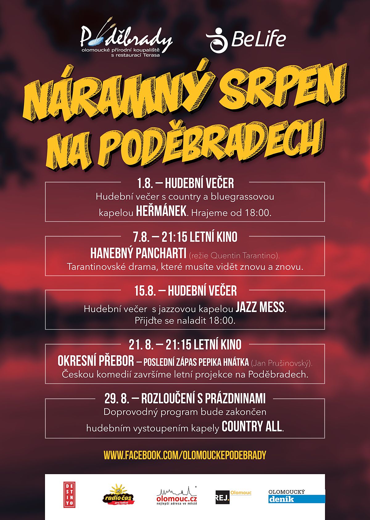 Další filmovou laskominu si pro vás připravily olomoucké Poděbrady. Od 21:15 je na programu promítání filmu Hanebný pancharti v hlavní roli s Bradem Pittem. Snímek slavného režiséra Quentina Tarantina, který natočil třeba známý film Pulp fiction: Historky z podsvětí, se odehrává v během druhé světové války v nacistické Francii. Historická realita je upozaděna na úkor lehce brutálnímu pohádkovému příběhu. Po příjemně stráveném dni na přírodním koupališti, si tak můžete dopřát kulturní zážitek v podobě dalšího skvělého Tarantinova filmu.