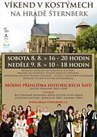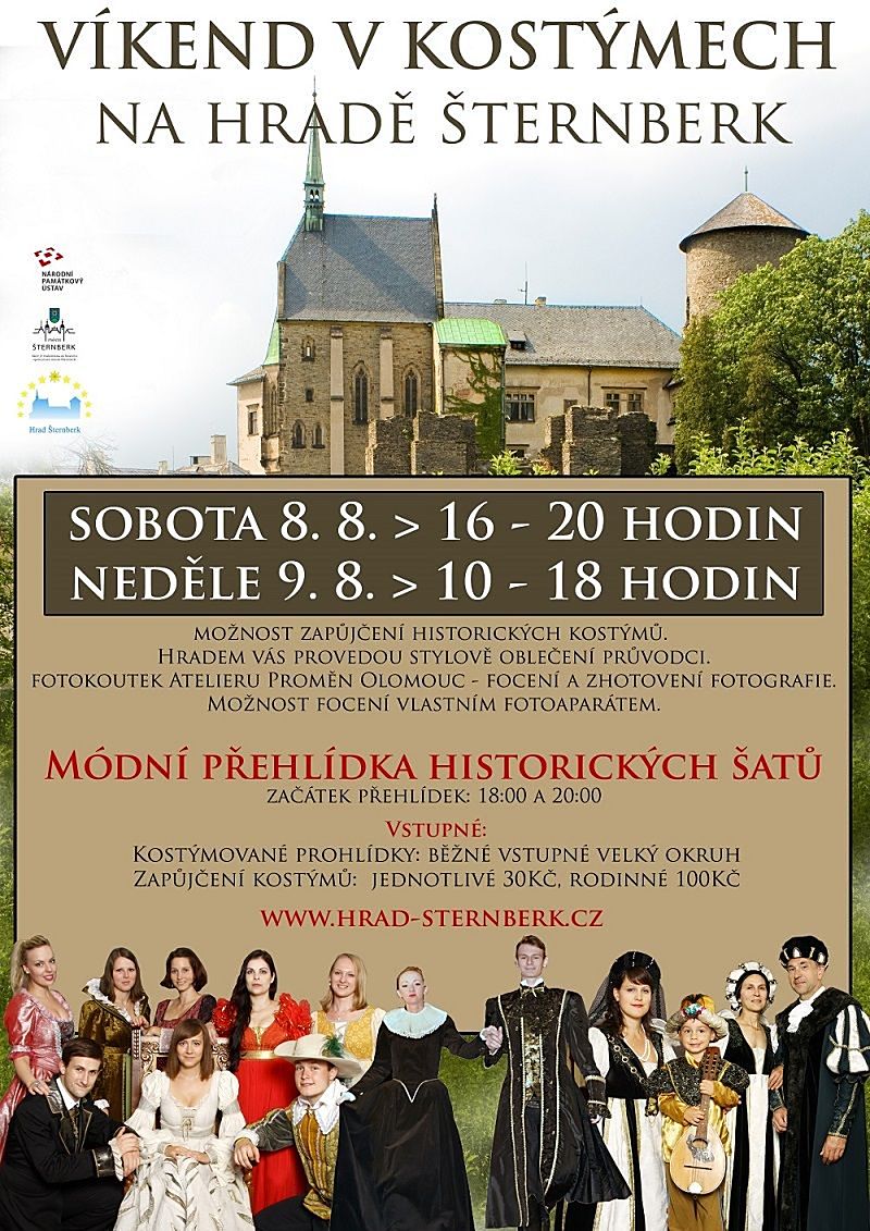 Mezi nejnavštěvovanější a nejoblíbenější akce patří víkend v historických kostýmech na hradě Šternberk. Návštěvníci mohou absolvovat prohlídku celého hradu, kterým je provedou průvodci v dobově oblečených kostýmech. Příchozí se tak dozví třeba zajímavosti z oblasti dřívější módy.Navíc se můžete nechat vyfotit v dobovém kostýmu. K dispozici bude výběr až z padesáti různých oblečků. Zúčastněné si vezme do parády vizážistka a fotografka Jana Berková, která doladí jejich vizáž a doplňky. Následnou menší fotografii je možné si vytisknout přímo na místě. Větší papírové fotografie, hrníčky, fotoplátna přijdou návštěvníkům až poštou. Půjčovné kostýmů činí 30 korun za osobu, za čtyřčlennou rodinu zaplatí příchozí 100 korun. Na nádvoří hradu bude po celý den k dispozici občerstvení. Sobotní program doplní módní přehlídky historických šatů, které se uskuteční v krásných prostorách Rytířského sálu. Začátky přehlídek budou v 18 a 20 hodin. Vstupné na přehlídky je v rámci vstupného do hradu.