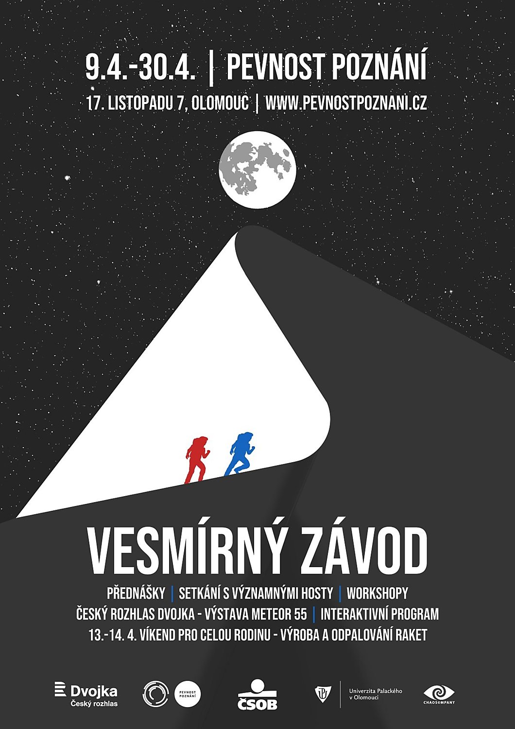 Dobývání vesmíru světovými velmocemi a touha být v kosmu první. O tom bude popularizační akce Vesmírný závod, která startuje 9. dubna v Pevnosti poznání Univerzity Palackého v Olomouci. Návštěvníci se mohou účastnit přednášek vědců, výstavy Meteor 55 Českého rozhlasu Dvojky, promítání filmů, workshopů i tvůrčích dílen.