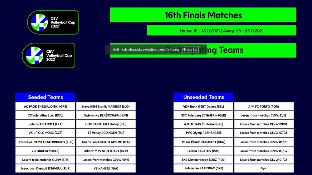 Pohár CEV: Volejbalistky VK UP znají možného soupeře