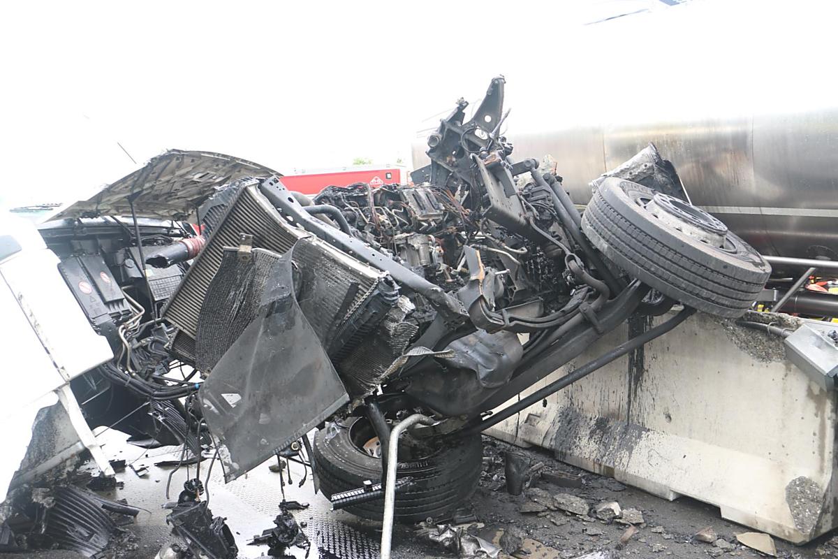 Požár na dálnici: kamion po nárazu do svodidel zachvátily plameny