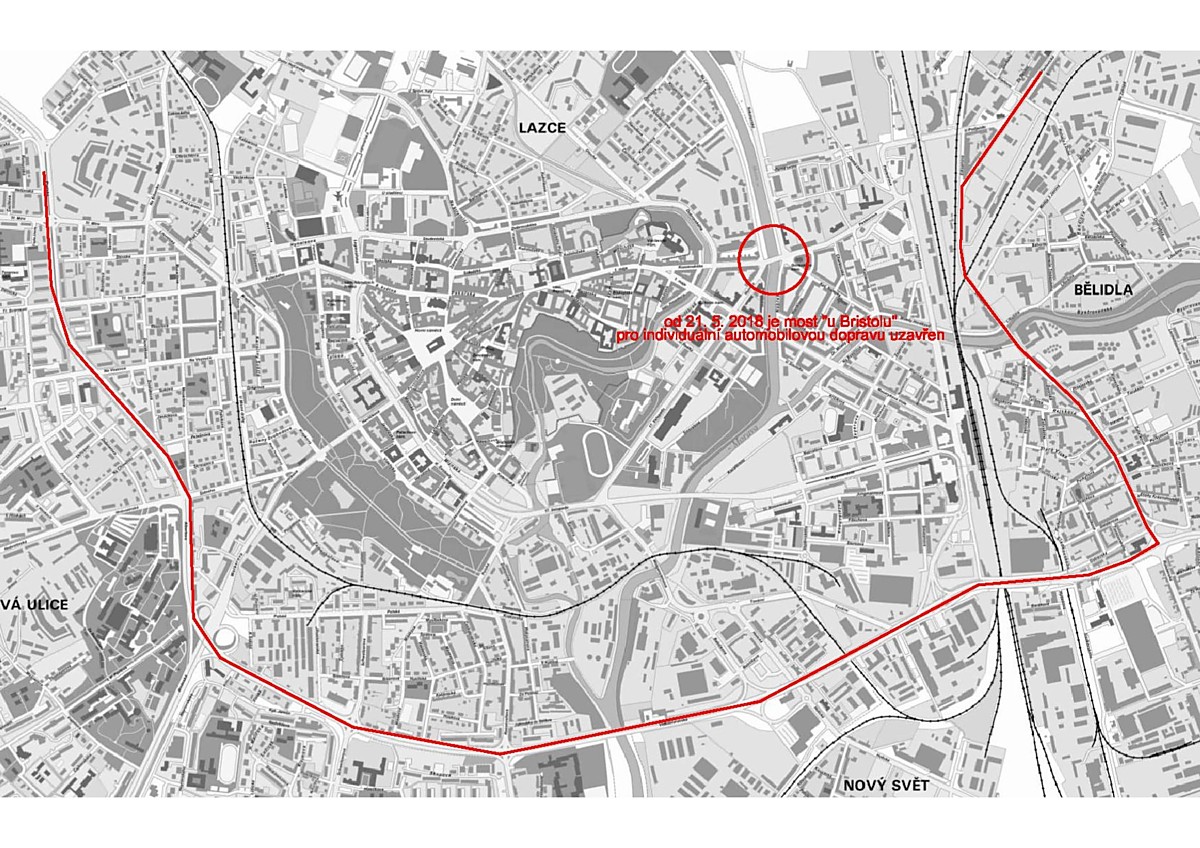 Pro řidiče bude od pondělí 21. května oficiálně vyznačená objízdná trasa, která vede z ulice Pavlovické přes Divišovu a Hodolanskou na ulici Tovární. Ostatní možnosti průjezdu městem samozřejmě záleží na individuální úvaze a místních znalostech každého řidiče. Po uzavření mostu v Komenského ulici pro individuální automobilovou dopravu budou v prvních dnech posíleny policejní hlídky na křižovatkách a současně bude bedlivě sledován vývoj provozu ve městě. Na základě získaných poznatků pak budou upraveny signální plány světelných signalizačních zařízení na křižovatkách či případná další opatření.