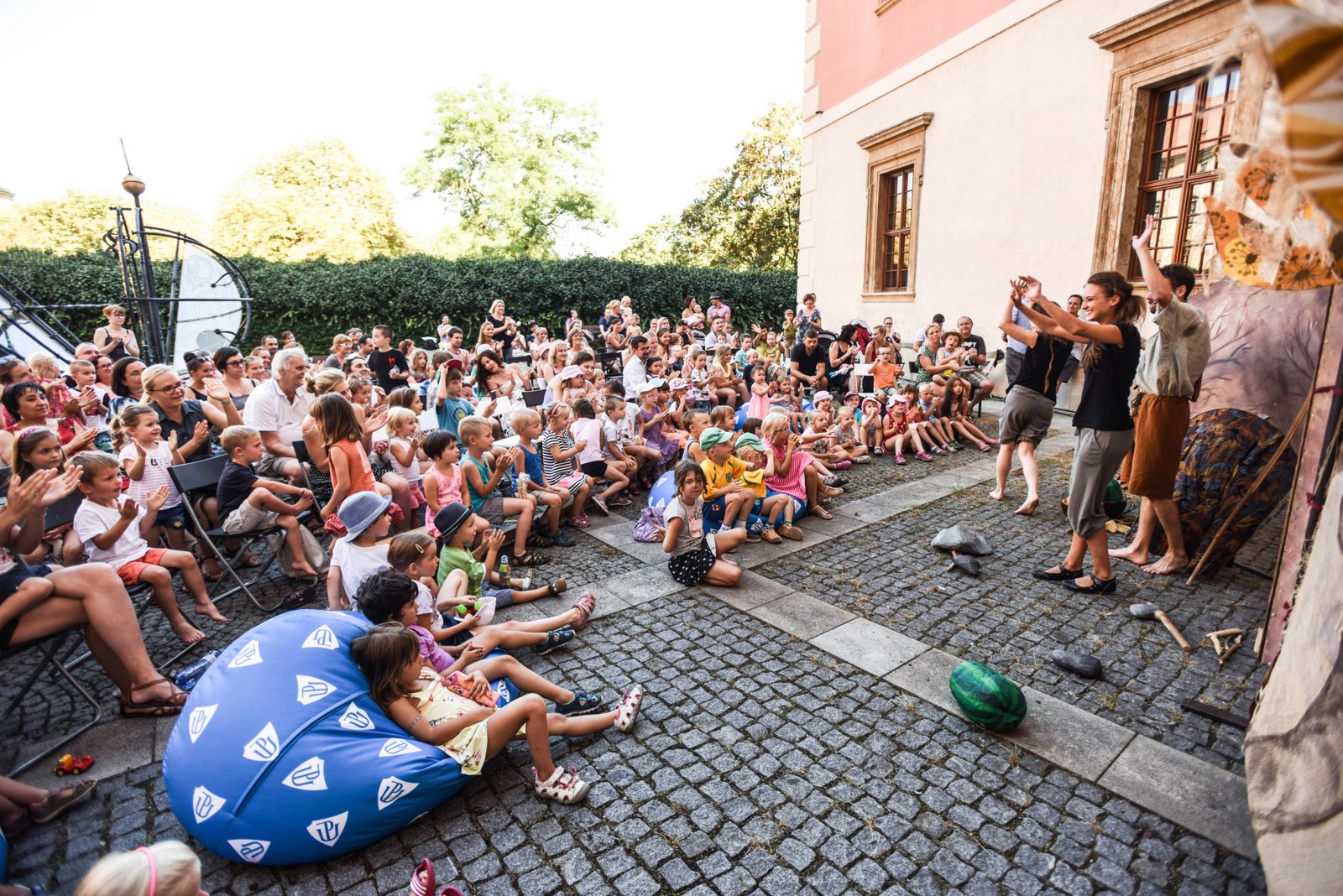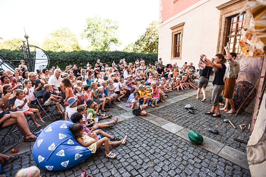 Pro děti zahrálo Divadlo Tramtarie pohádku Princ Bajaja a pohádku O pračlovíčkovi na nádvoří Uměleckého centra. A přestože pohádku O pračlovíčkovi hraje divadlo už 8 let a má za sebou přes 450 repríz, opět ji navštívilo na 150 diváků.