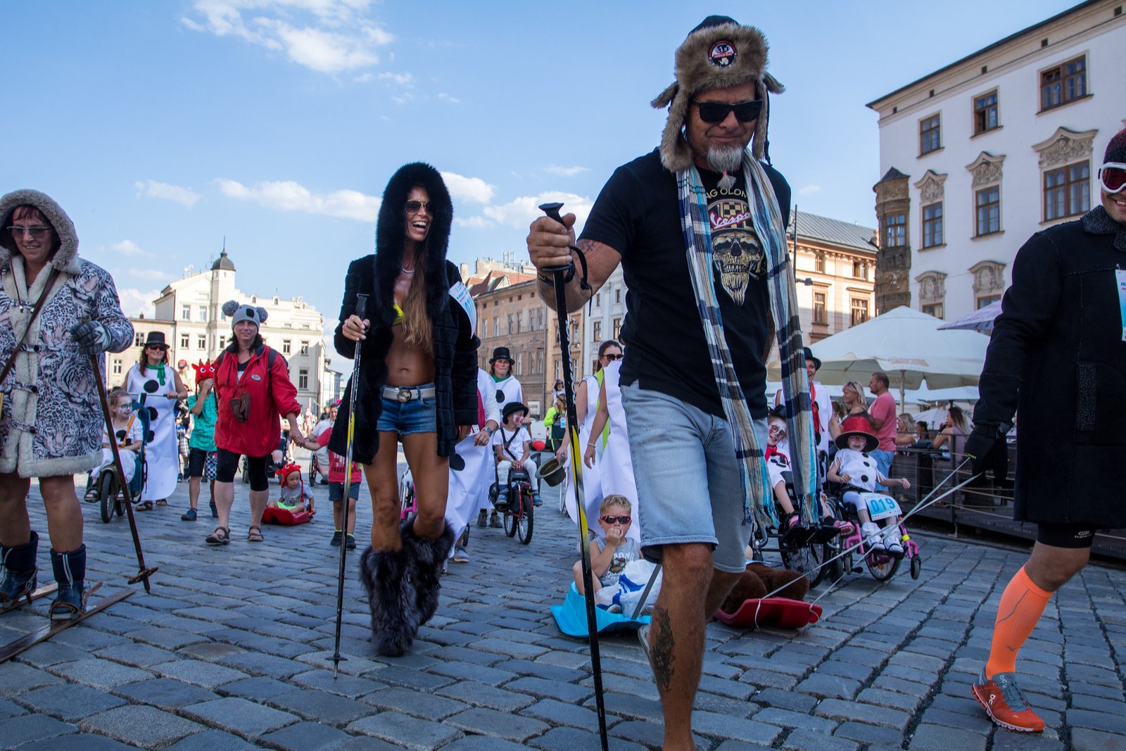 Už tradiční půlvánoční běh ve čtvrtek odpoledne pobavil Olomoučany i četné turisty. Průvod asi dvou stovek nadšenců v zimních kombinézách, čepicích, kabátech a hlavně s lyžemi na nohou, už má ve městě tradici. Výtěžek akce pak putuje na dobročinné účely.