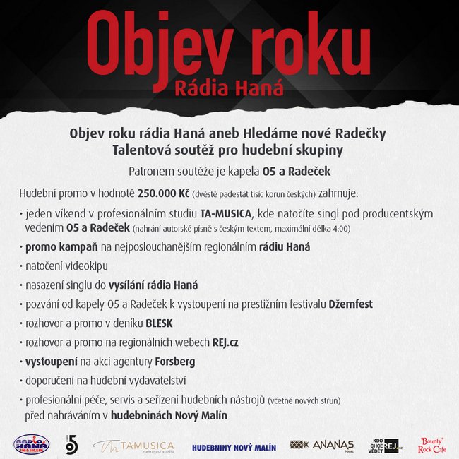 Radio Haná hledá Objev roku. Začínajícím kapelám nabízí promo v hodnotě 250 000 korun
