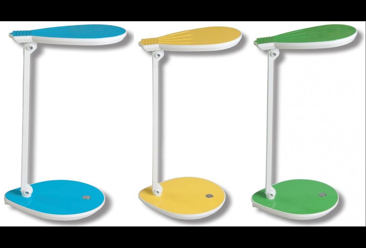Barevná série stolních lamp pro školáčky.