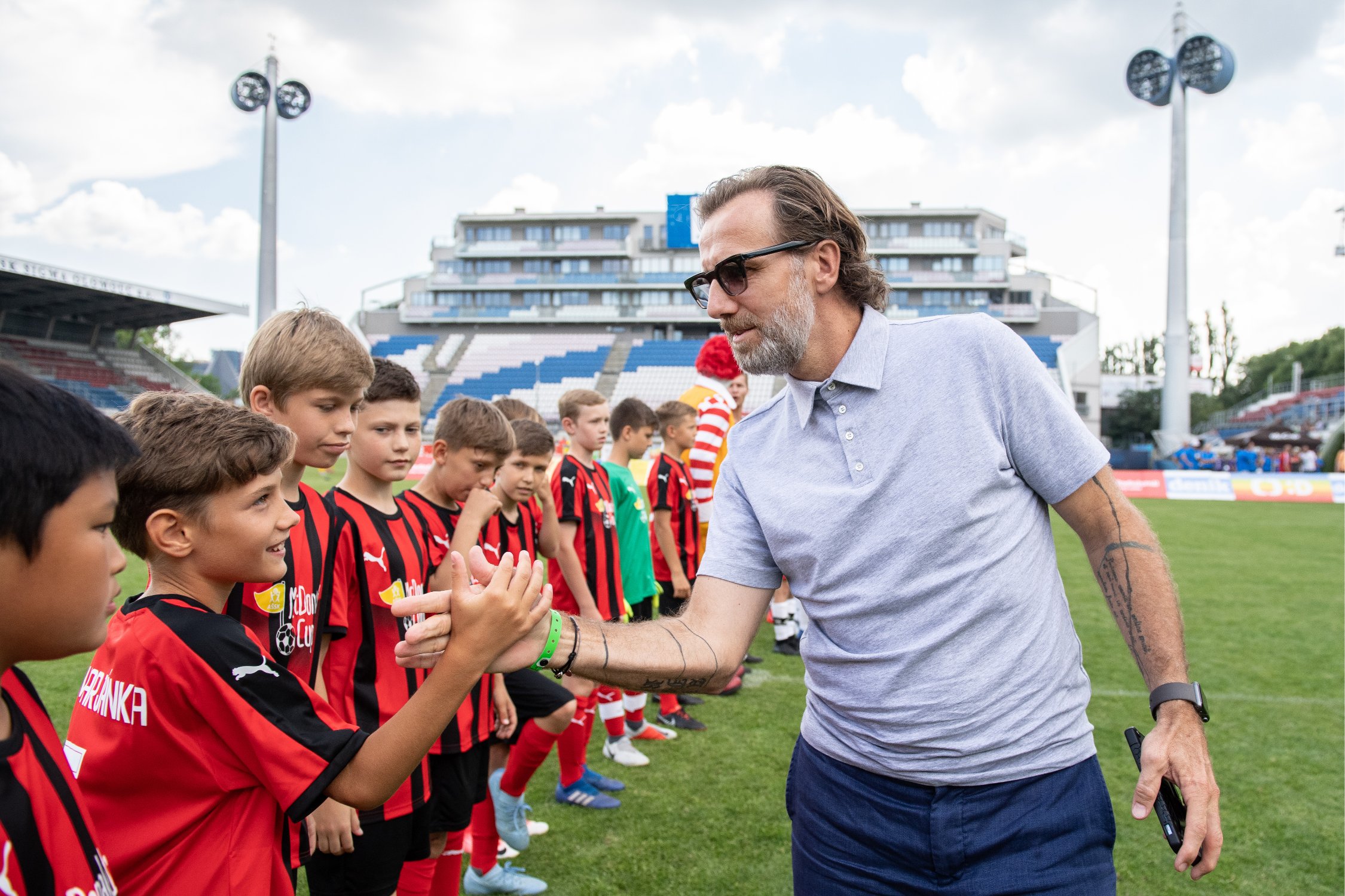 Veselí i smutní odcházeli kluci na oběd a Andrův stadion se mezitím připravil na exhibiční zápas osobností proti týmu McDonald’s. Na hřišti pobíhaly takové hvězdy jako David Rozehnal, Jaromír Blažek, Marek Bakoš nebo Petr Švancara. Roman Hubník pak na postranní čáře působil v roli kouče, který posílal na hřiště i svého syna.