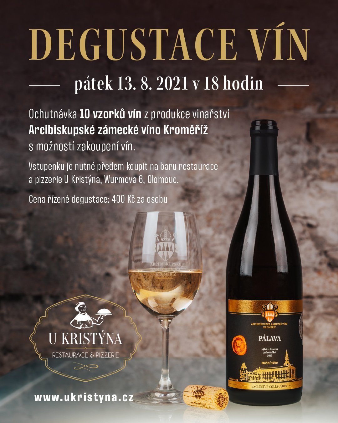Špičková vína z jednoho z nejstarších evropských vinařství, Arcibiskupského zámeckého vína Kroměříž, připravila na pátek k řízené degustaci restaurace a pizzerie U Kristýna. Ochutnat můžete opravdu špičkové kousky.