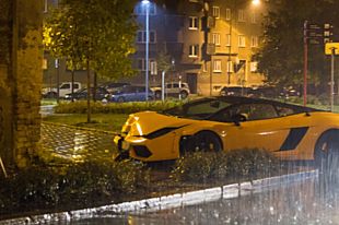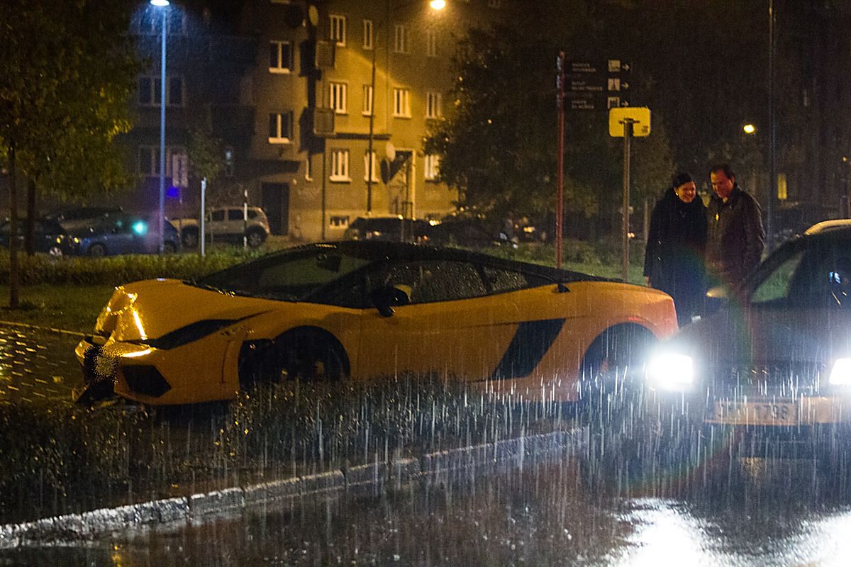 Řidič zapíchl lamborghini do rohu kasáren u kruháče Na Střelnici