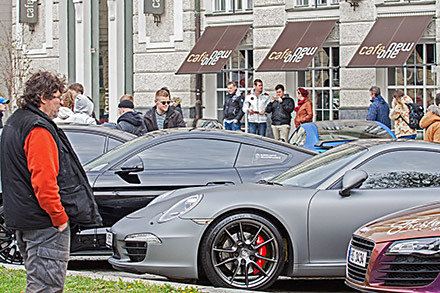 Na přehlídku před Cafe New One v pátek dorazila řada lidí, kteří mají rádi superrychlé a luxusní vozy...
