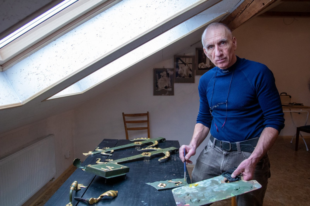 Mořickému kostelu se vrací lesk a barvy. Umělecký kovář a restaurátor Jiří Běhal pracoval na obnově kovových prvků vrat kostela.
