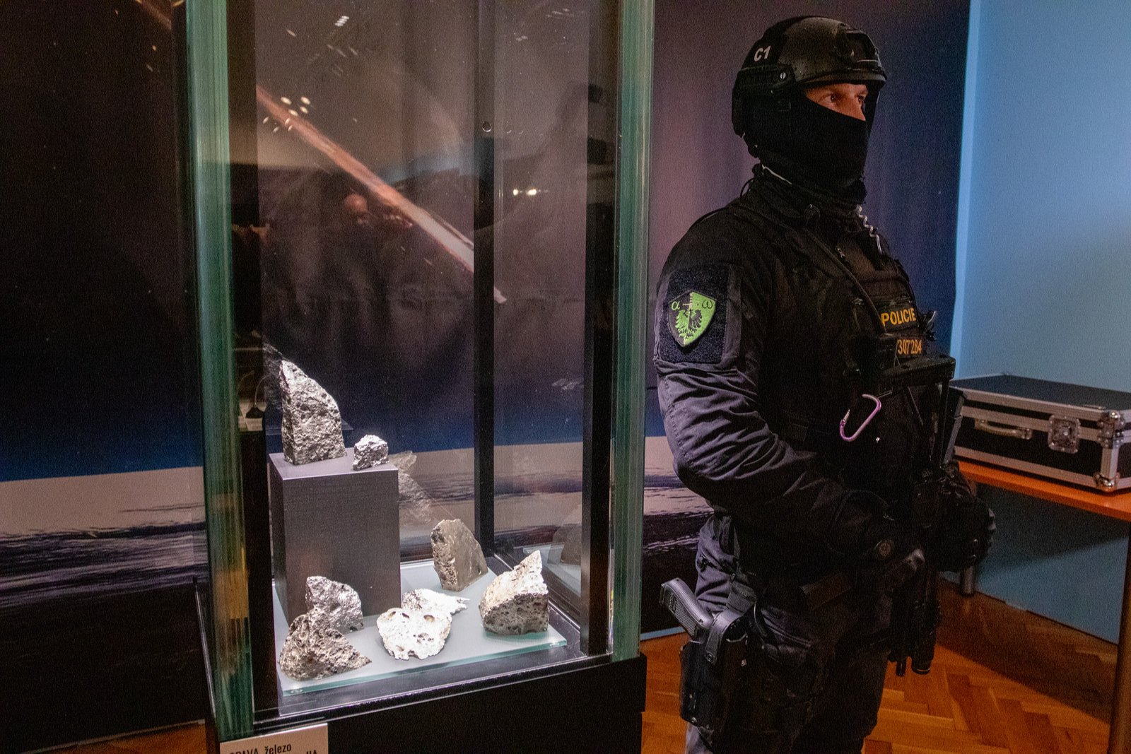 Meteority pod dohledem. Vzácné meteority mohli několik dnů v listopadu obdivovat návštěvníci Vlastivědného muzea. Převozu předcházely policejní manévry, kameny mají totiž nevyčíslitelnou hodnotu.