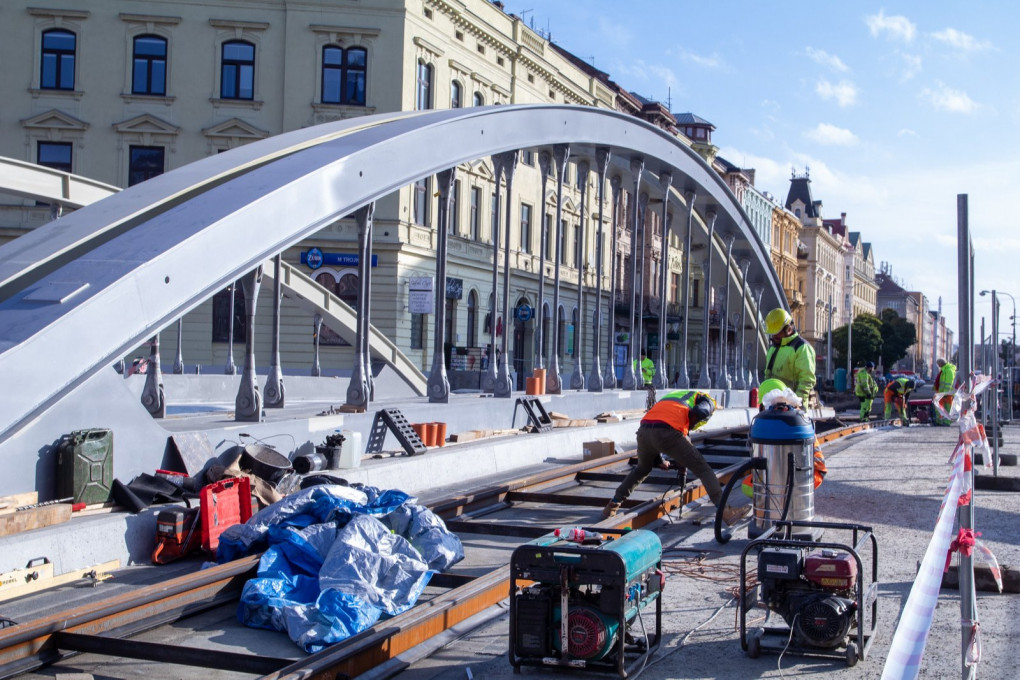 Stavba mostu pokračuje. Dopravu ve městě stále paralyzuje nemožnost projet od nádraží do centra. Nový most bude hotový během léta. Takto stavba vypadala v polovině listopadu.