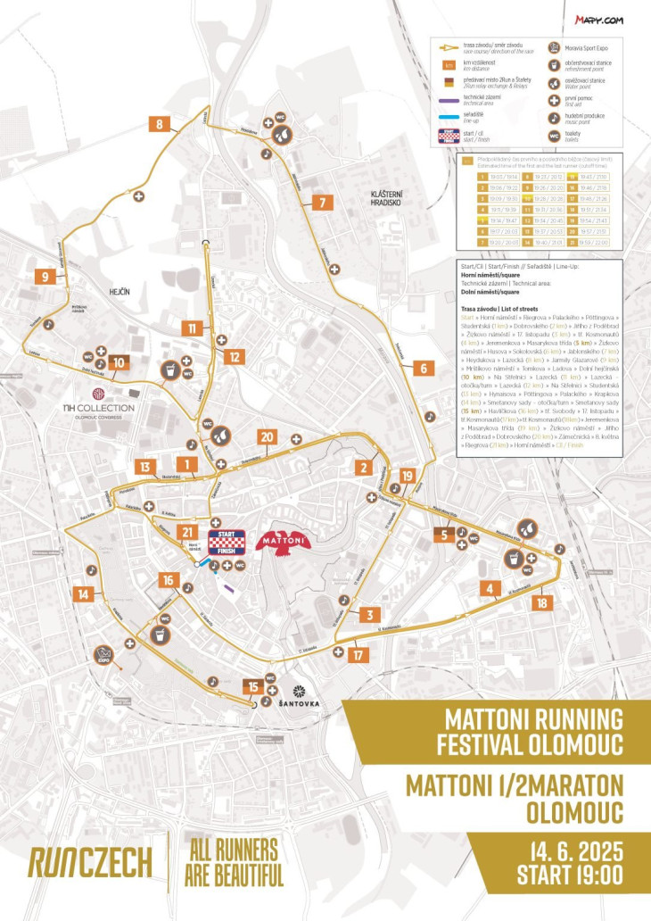 V sobotu 14. června se Olomouc opět stane centrem běžeckého dění. Patnáctý ročník závodu Mattoni 1/2Maraton Olomouc se již od začátku řadí mezi světovou elitu dálkových běhů a stal se nejoblíbenější běžeckou akcí na Moravě. Závodu se opět aktivně zúčastní tisícovky běžců, samotnému půlmaratonu navíc ještě předchází populární rodinný běh. To vše s sebou přináší i určitá omezení v podobě dopravních uzavírek i změn v provozu MHD. Dopravní omezení jsou platná v sobotu 14. června, část z nich ovšem bude platit už od pátku 13. června.