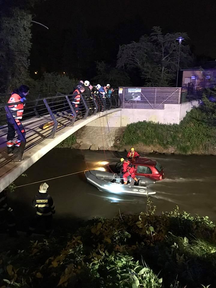 "Zdravotnické operační středisko přijalo tísňovou výzvu pro zraněnou osobu ve vozidle sjeté do potoka ve 22:27 hodin. Na místě posádkami (RV+RZP) nalezena sedmasedmdesátiletá žena při vědomí v částečně zatopeném vozidle, hladina vody dosahovala úrovně dolní hrany palubní desky. Samotnou záchranu a vyproštění provedla jednotka hasičského záchranného sboru, návazně na to jsme poskytnuli komplexní přednemocniční nedokladnou péči u podchlazené starší pacientky s projevy mírné zmatenosti. Po celkové prohlídce, ošetření a zajištění byla žena převezena k navazující nemocniční péči do FNOL," uvedl mluvčí záchranářů Zdeněk Hošák.