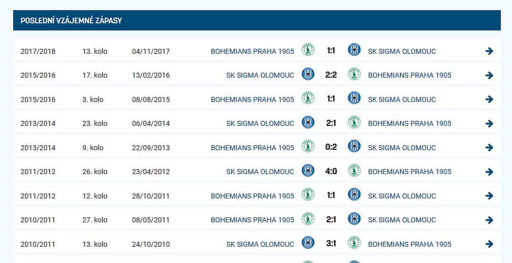 Poslední vzájemné duely Sigmy s Bohemkou.