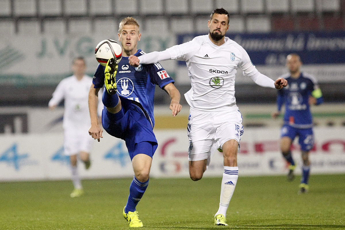 Uroš Radakovič, stoper Sigmy, v souboji s Lukášem Magerou.