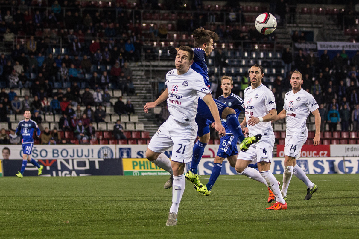 Jan Navrátil v hlavičkovém souboji s Jurajem Chvátalem.