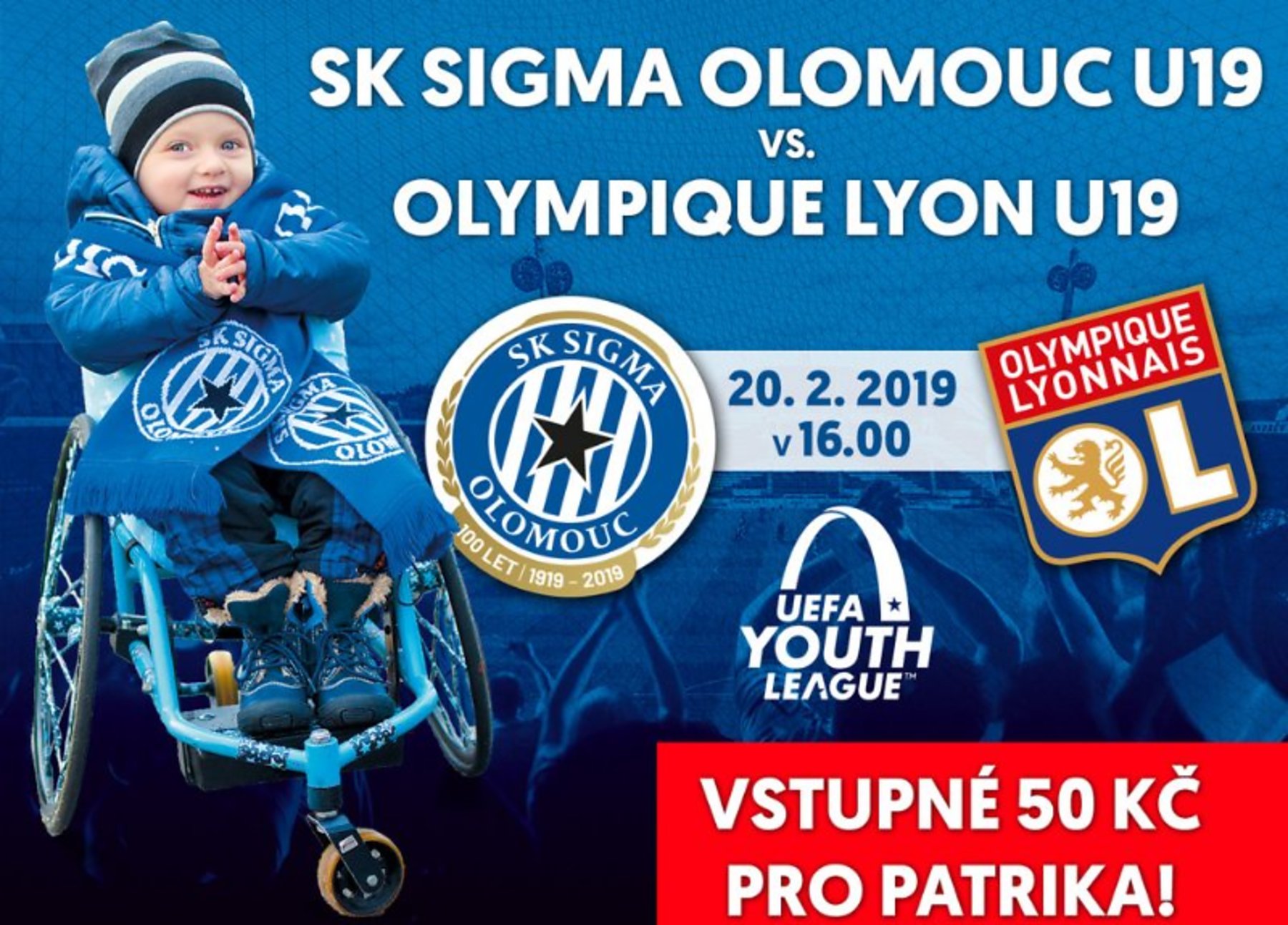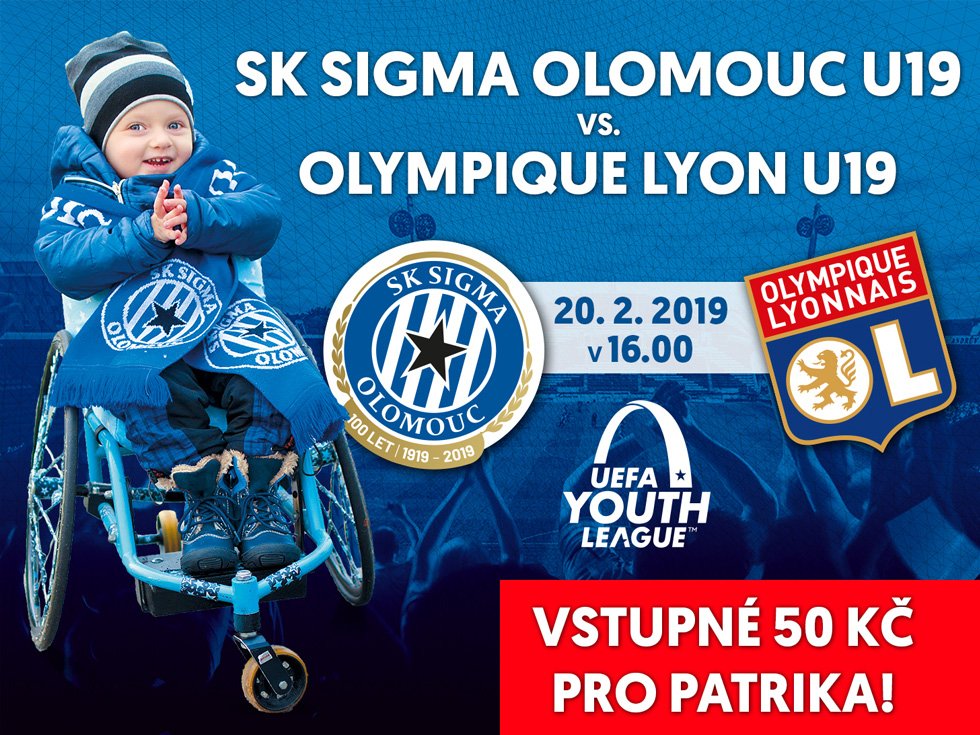 Již 20. února sehrají mladíci SK Sigma Olomouc U19 další utkání vyřazovacího kola UEFA Youth League. V jediném duelu této fáze soutěže přivítá olomoucký celek na domácí půdě slavný Olympique Lyon. A nebude to ledajaký zápas - všichni, kteří si koupí vstupenku, podpoří malého Patrika, který trpí spinální svalovou atrofií.