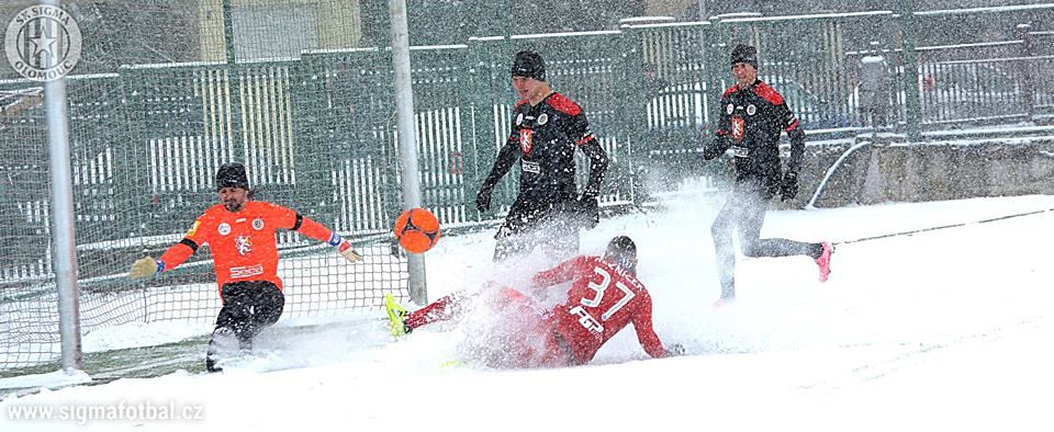 Fotbalisté SK Sigma Olomouc odehráli třetí duel přípravy proti soupeři o třídu výše, než byli soupeři sobotní. Na Hanou přijel druholigový Hradec Králové. I ten si odvezl z Olomouce nadílku. Sigmácká rychlá hra šla aplikovat i na sněhu, Hanáci vyhráli 7:3. Po dvou brankách dali Martin Hála a Bijde Manzia.