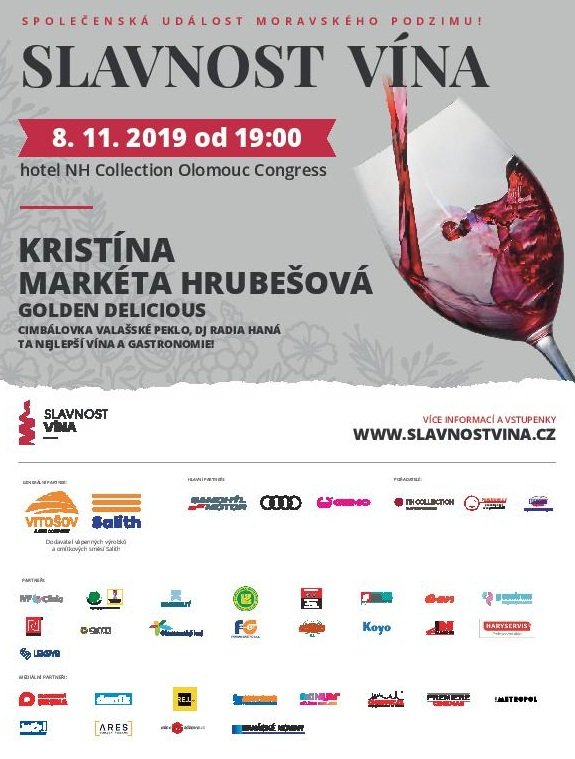 "I letošní ročník Slavnosti vína přivítá hvězdné hosty. Celým večerem nás provede sympatická herečka a moderátorka Markéta Hrubešová a jako hlavní hudební host se představí slovenská zpěvačka Kristína," popisuje ředitel spolupořádající agentury Forsberg Marek Berger. K tanci a poslechu zahraje kapela Golden Delicious a o správnou atmosféru v restauraci Sal de Mar se postará cimbálovka Valašské peklo a DJ Radia Haná Lukáš Kobza. "Rozhodně je na co se těšit. Bude tu o vás královský postaráno," dodává ředitel spolupořádajícího Radia Haná David Foretník.
