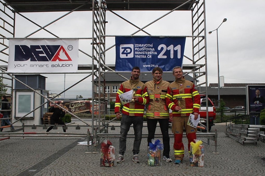Soutěžící rozděleni do kategorií v HZS A - 18-34 let, B - 35-44 let a C nad 45 let a v kategorii SDH do 35 let a nad 35 se úderem 9:45 pustili do prvního soutěžního klání. Jejich fyzickou připravenost prověřily čtyři úseky. V první části se ve zkráceném popisu jednalo o běh s hadicemi. Druhá obsáhlejší část byla sestavená z hamerboxu, tunelu, figuríny a bariéry. V třetím úseku hasiči přemísťovali žebříky (přenesení a postavení čtyř nastavovacích žebříků a poté vytažení břemene pomocí lana na lešení). Závěrem třetí části je zapojení proudnice na monitor. Poslední částí je úsek, kdy soutěžící běží do výškové budovy RCO, a to až do úplně nejvyšších pater z opravdu posledních sil.