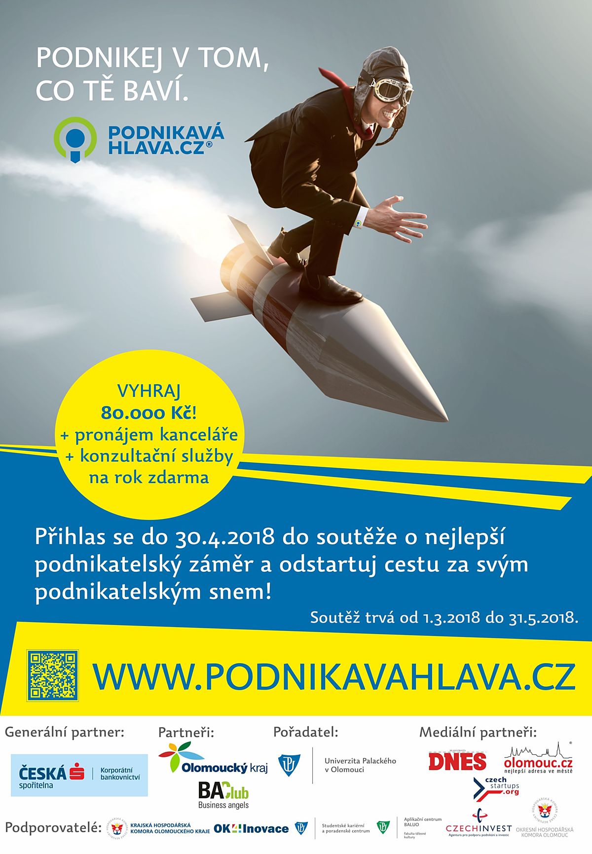 Soutěž Podnikavá hlava probíhá za finanční podpory generálního partnera České spořitelny – poskytovatele služby Erste Corporate Banking, Olomouckého kraje a společnosti BA Club CZ. Soutěžní klání potrvá do 31. května, kdy pořadatel slavnostně vyhlásí vítěze. Soutěžit se bude i ve speciální kategorii Podnikatel v sukni nebo Zdraví-pohyb-sport. Tři vybraní finalisté budou mít v listopadu možnost prezentovat své nápady před stovkami účastníků olomoucké konference o podnikání UP Business Camp.