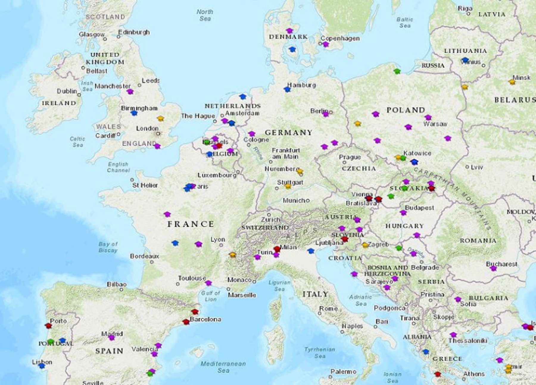Zahraniční partnerské instituce jsou v mapové aplikaci rozděleny do vrstev podle oborové příslušnosti a podle jednotlivých využívaných mobilit. Přímo v mapě může uživatel několika kliknutími jednoduše zjistit základní informace o zahraničních partnerských univerzitách, najít odkazy na web konkrétních univerzit, informace o městě či předchozí zkušenosti studentů, kteří už na daném místě svůj pobyt realizovali.