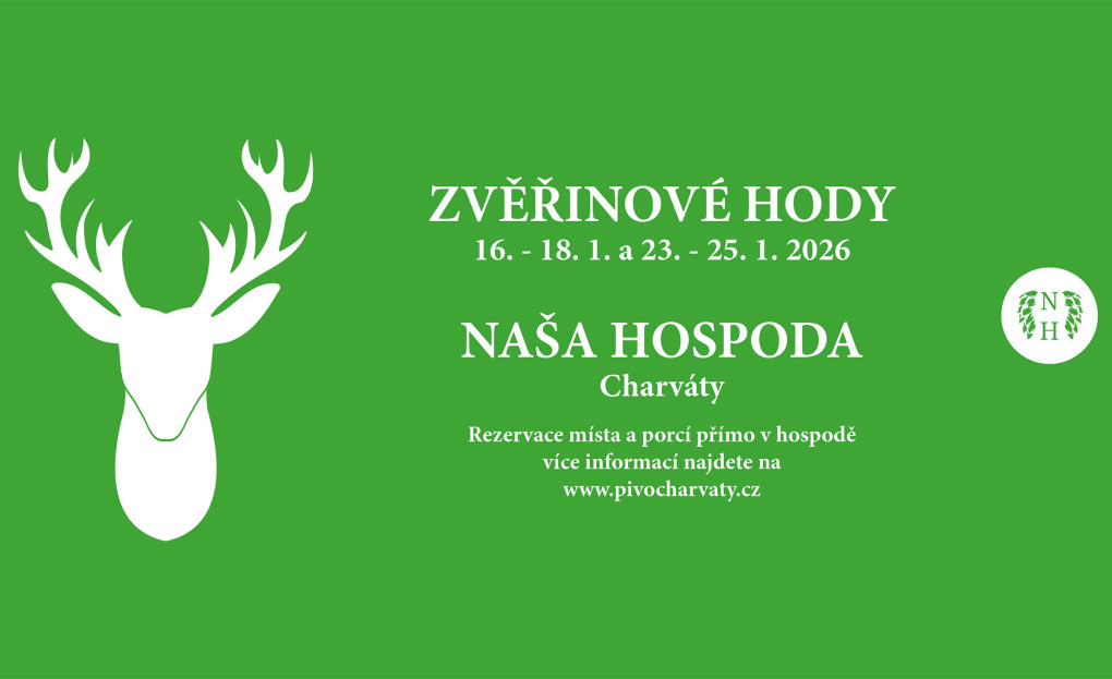 Naša hospoda Charváty zve všechny zájemce od pátku do neděle na zvěřinové hody. Po celý víkend si budete moci pochutnat na zvěřinových specialitách, chybět nebude ani dobré pivo a víno. Více informací o menu naleznete zde →