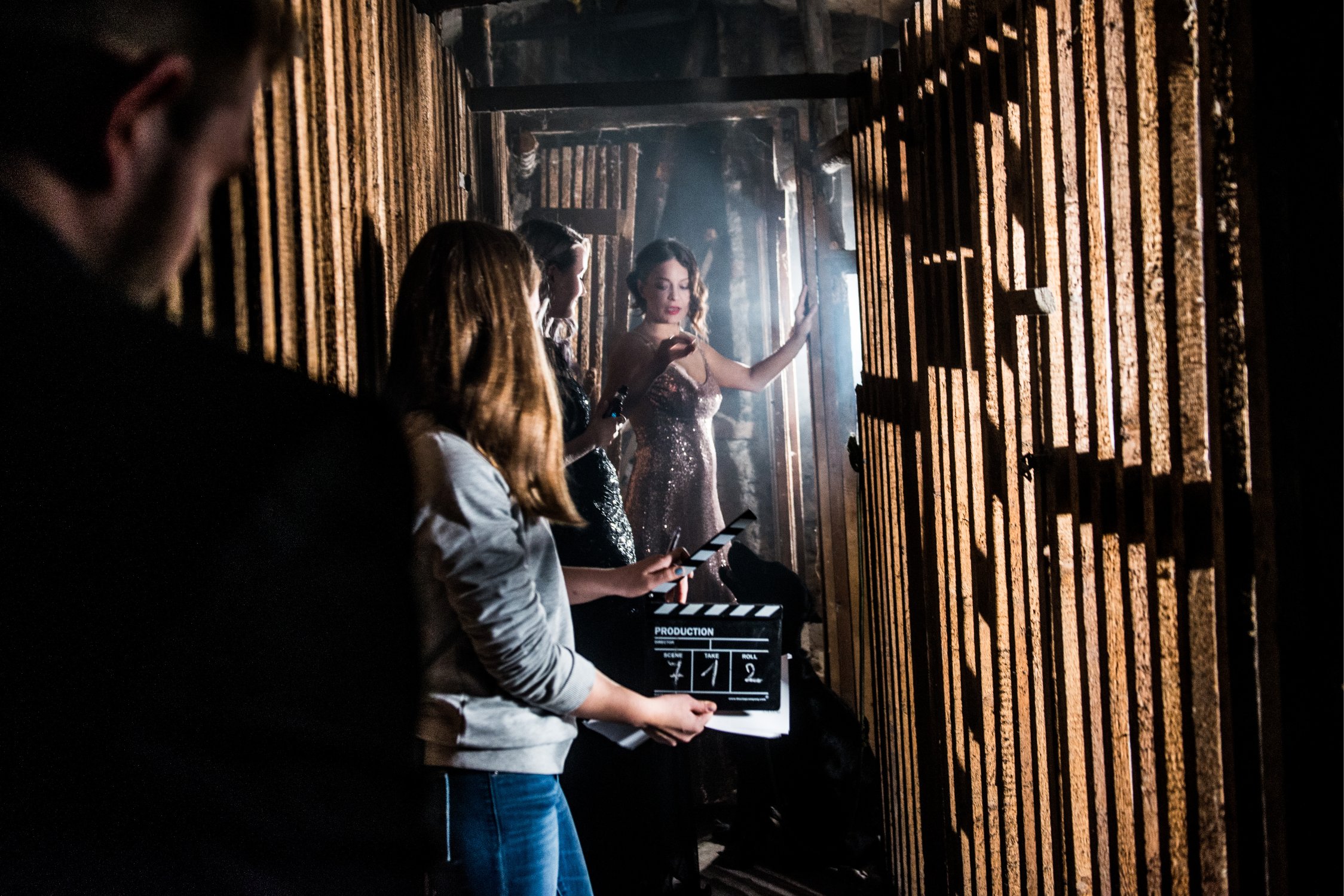 Filmový štáb při práci (vlevo). Správný film noir se neobejde bez femme fatale manipulující s muži (vpravo)